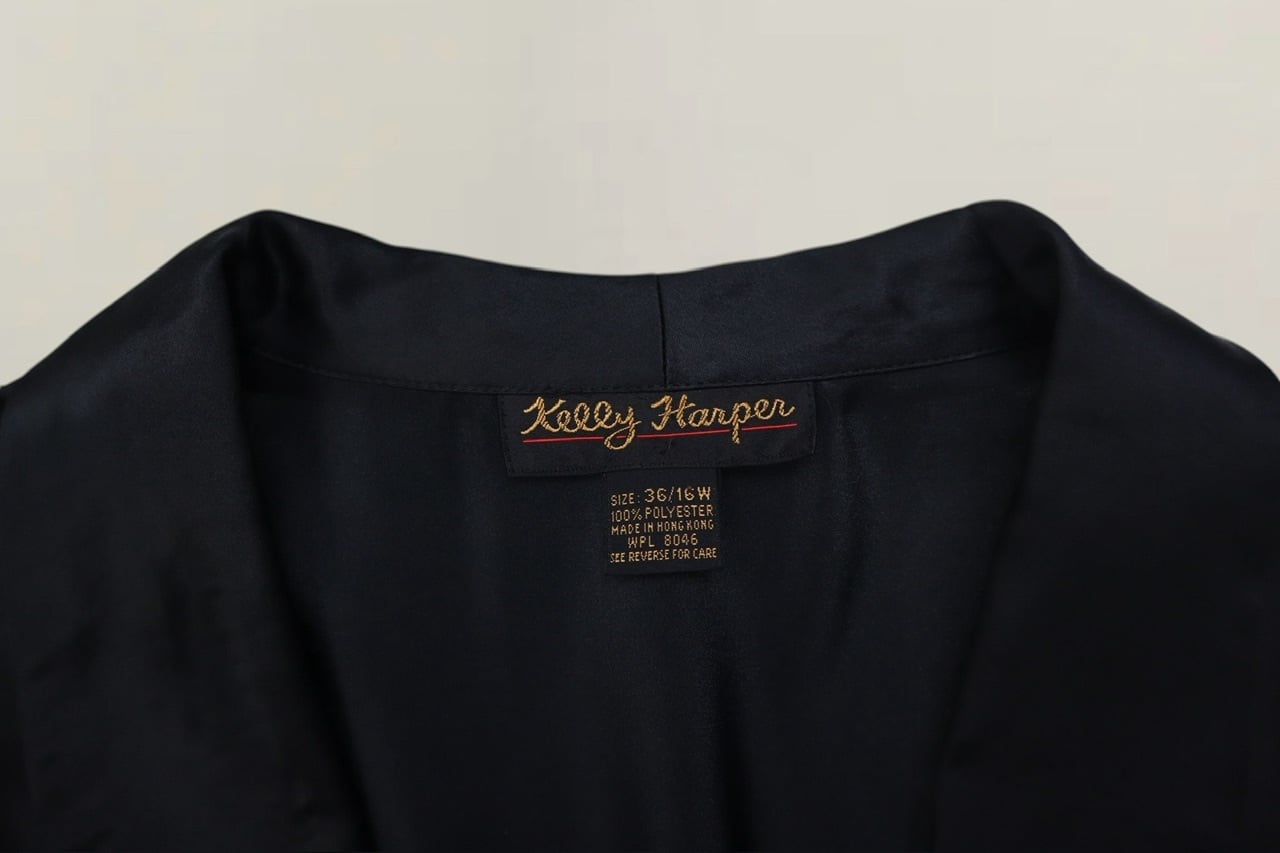 しかもツヤッツヤのサテン生地に襟はショールカラー