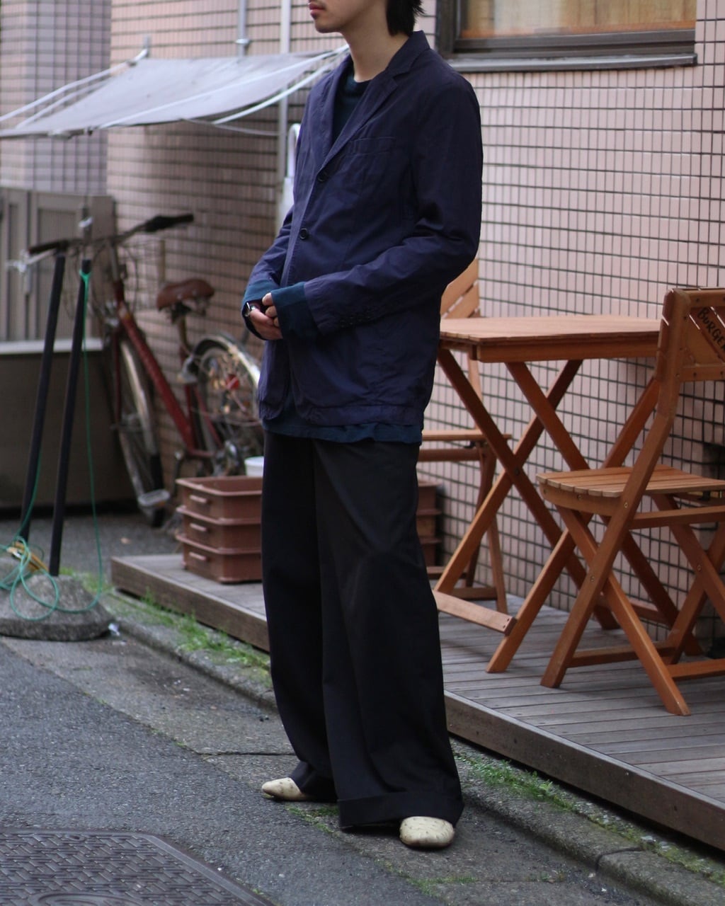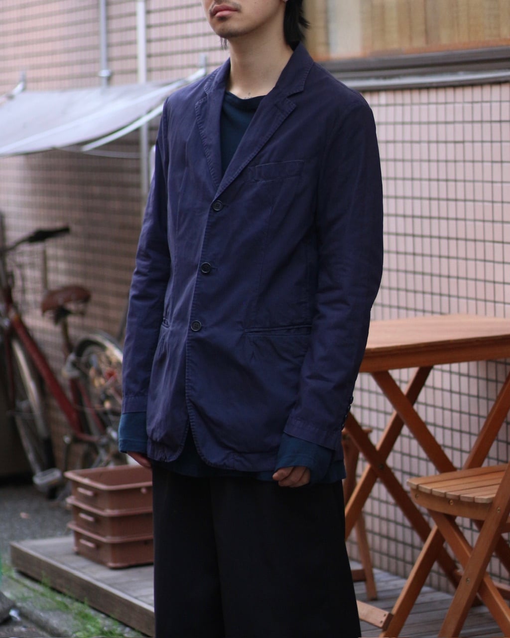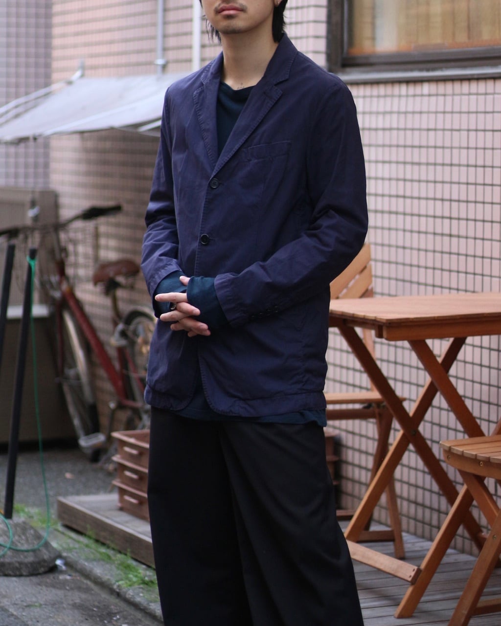 わしわしっとしたコットン生地は通気性よく、春夏のライトアウターとして重宝しそうです、、☺︎