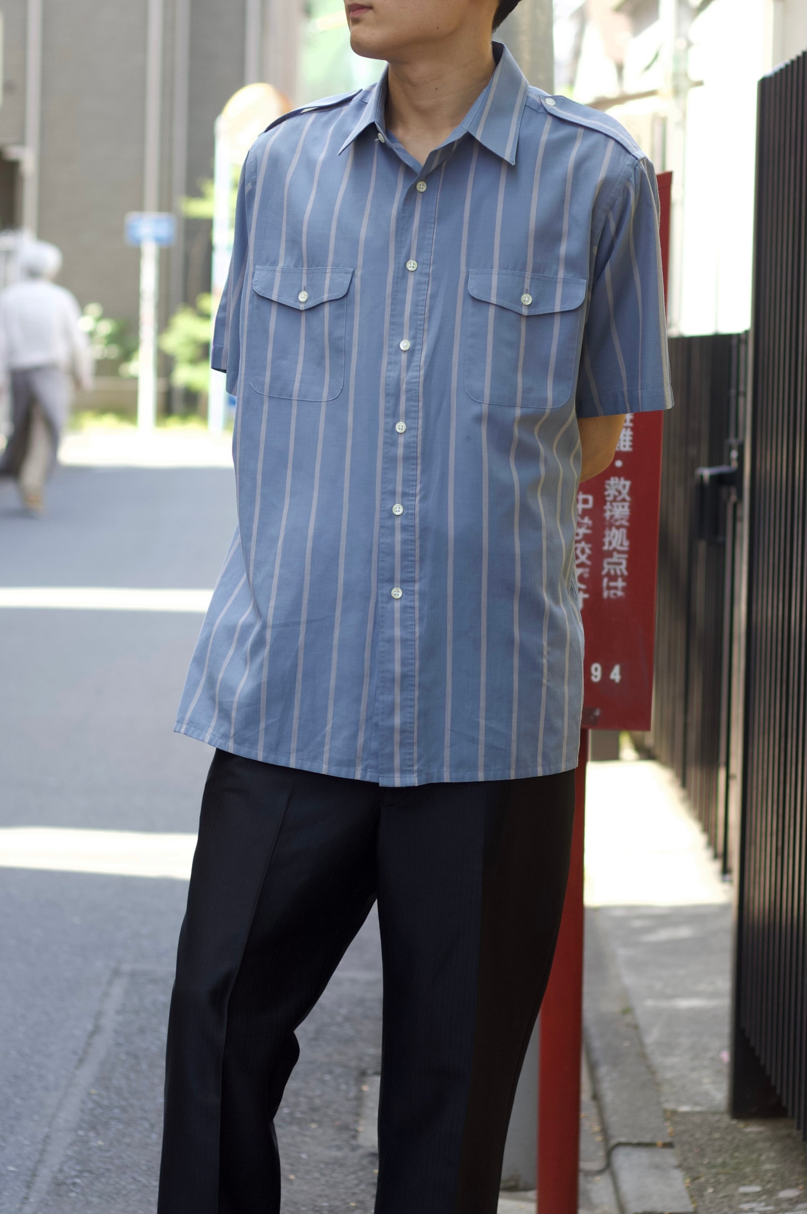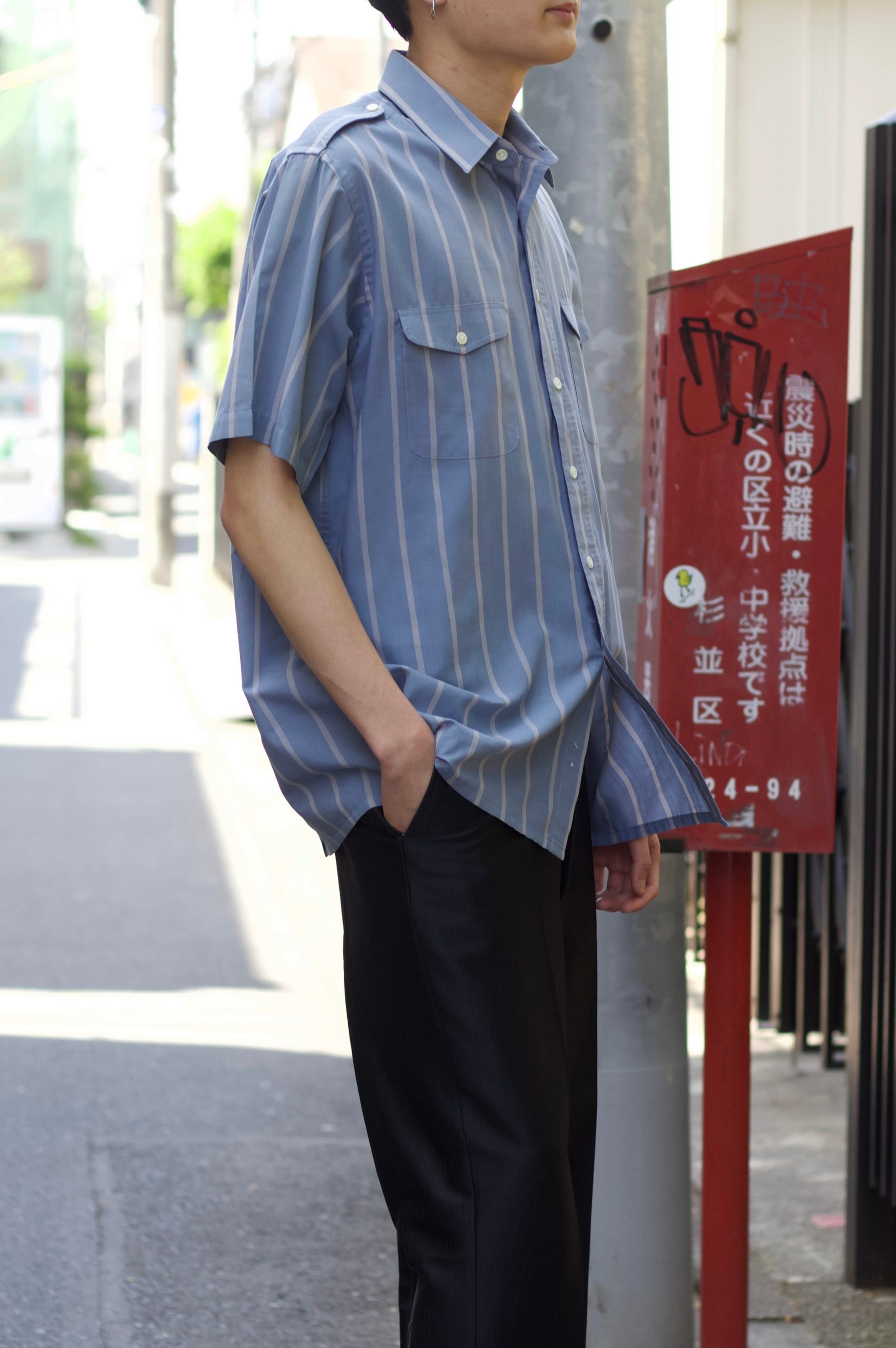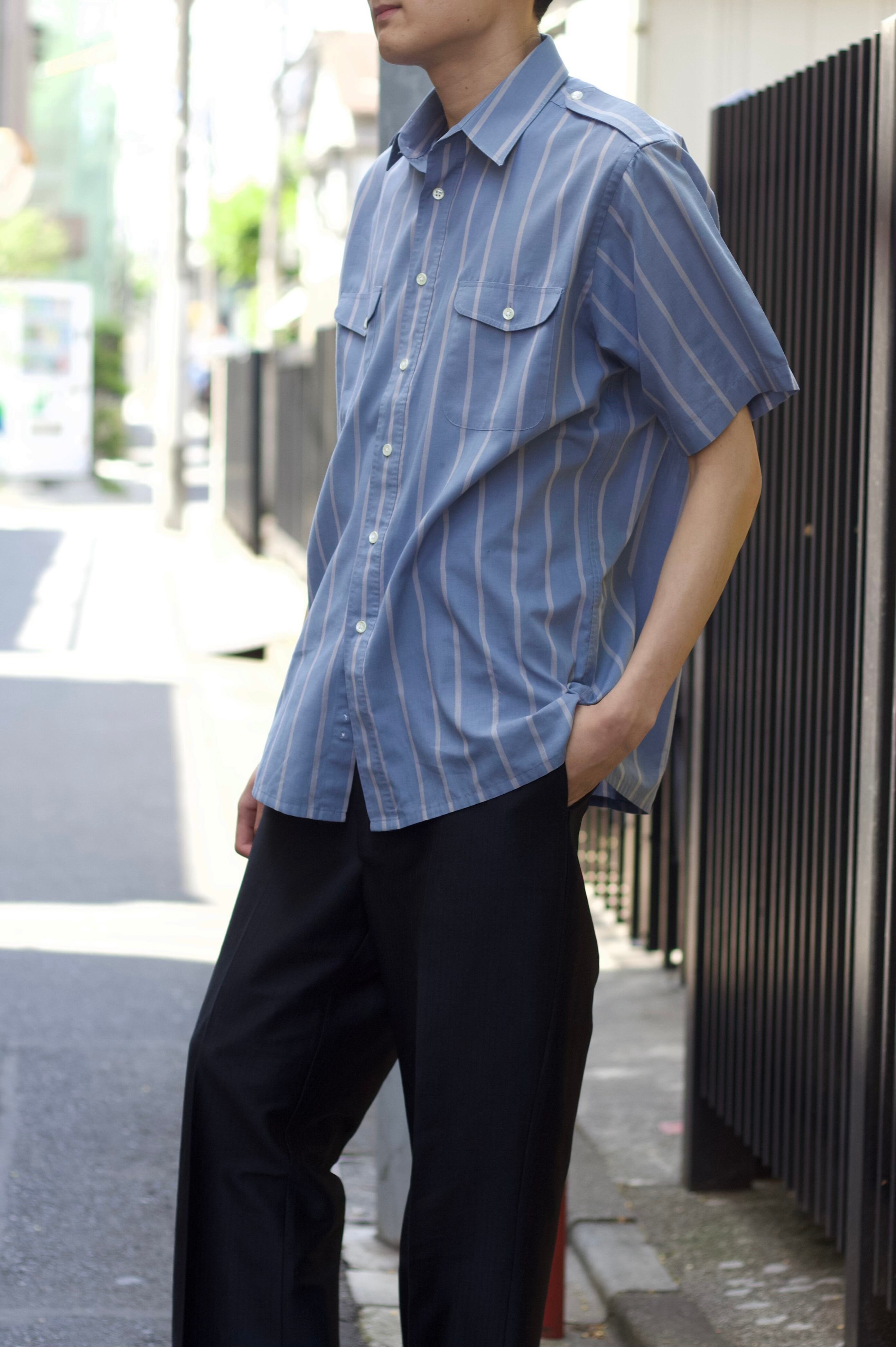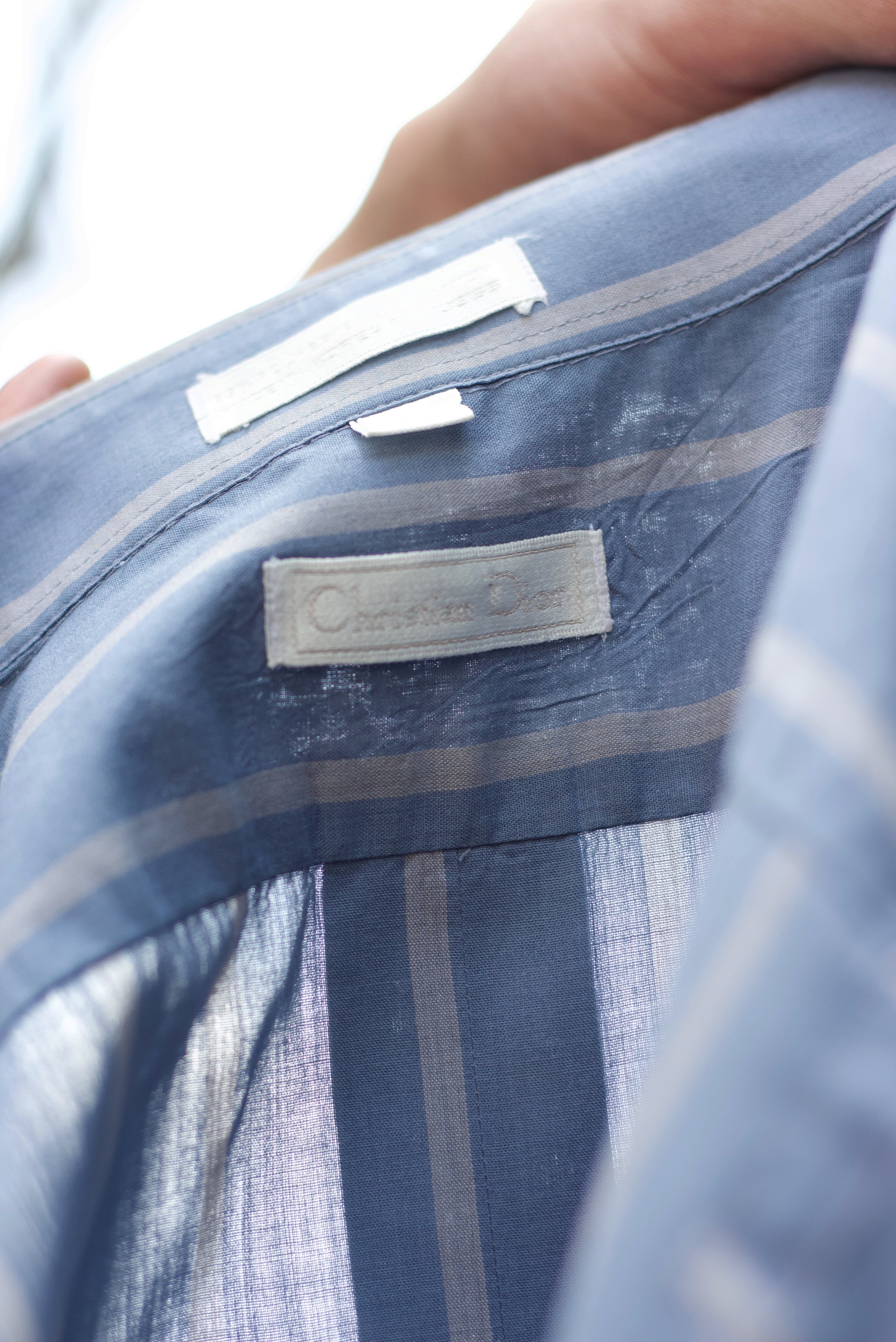淡いブルーカラーにホワイトのストライプが走る、90年代Christian Diorの半袖シャツ。