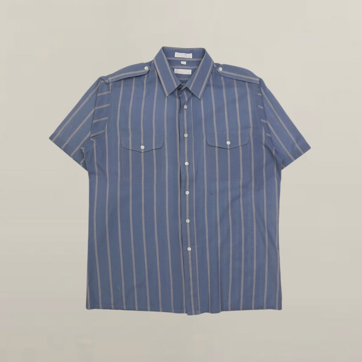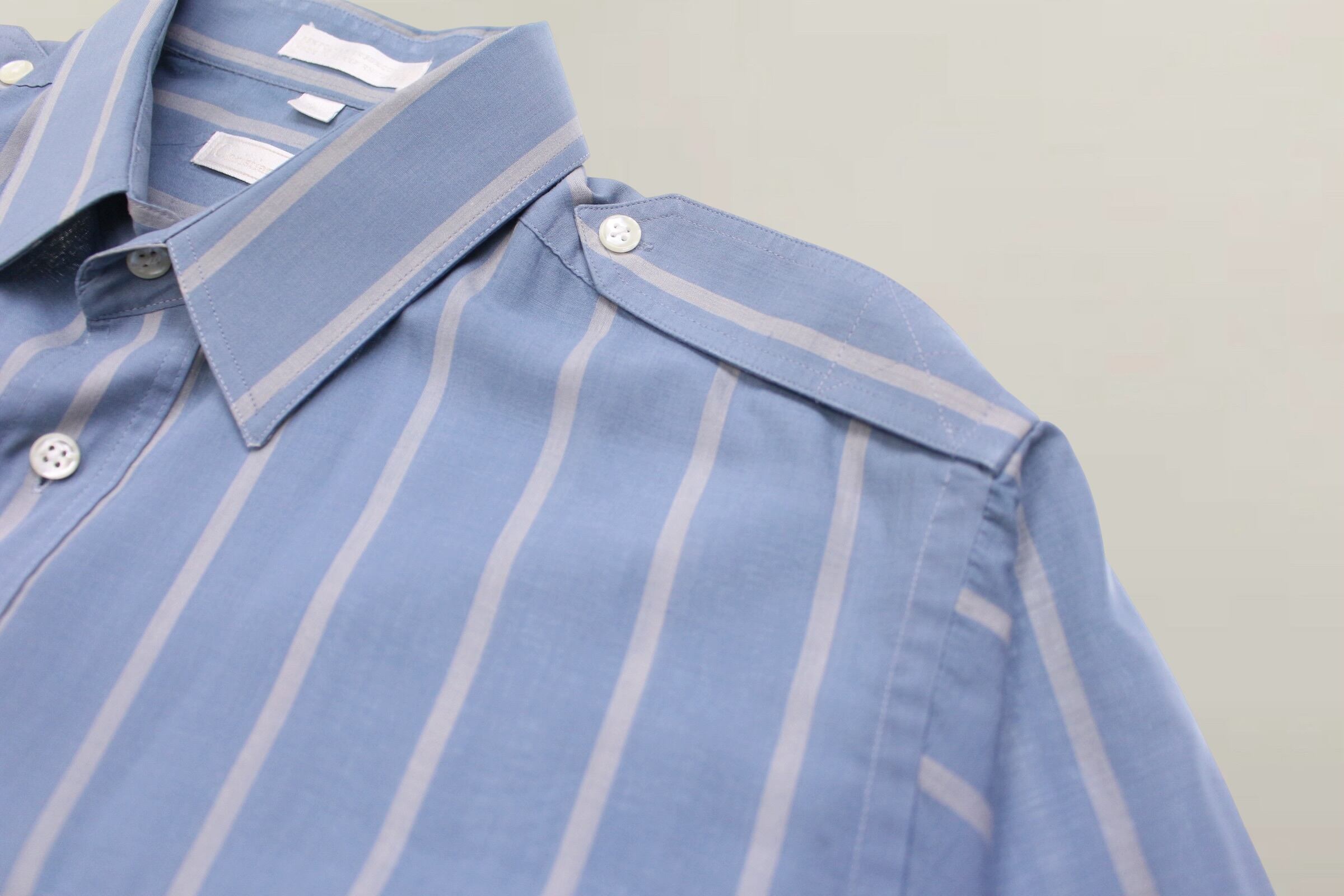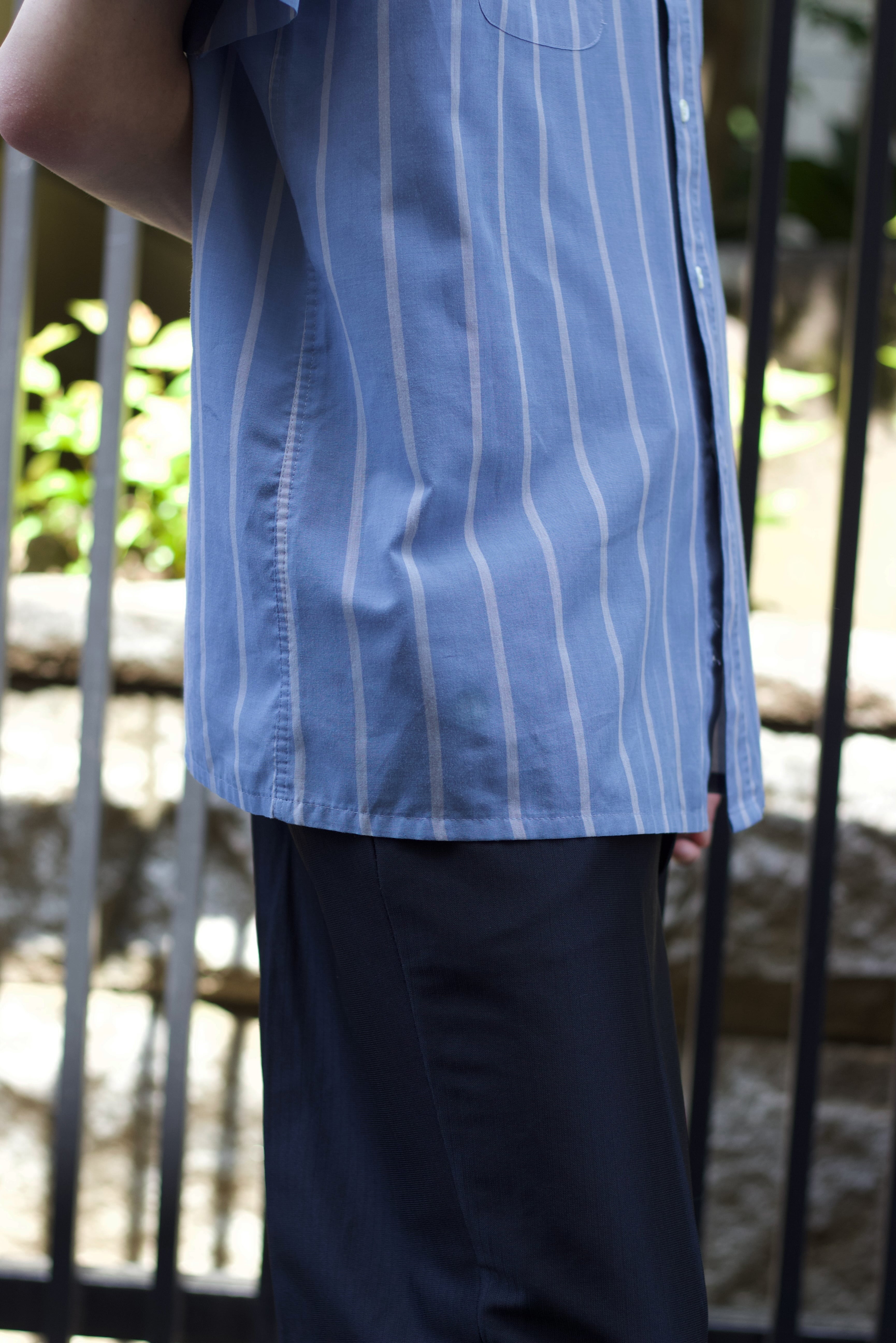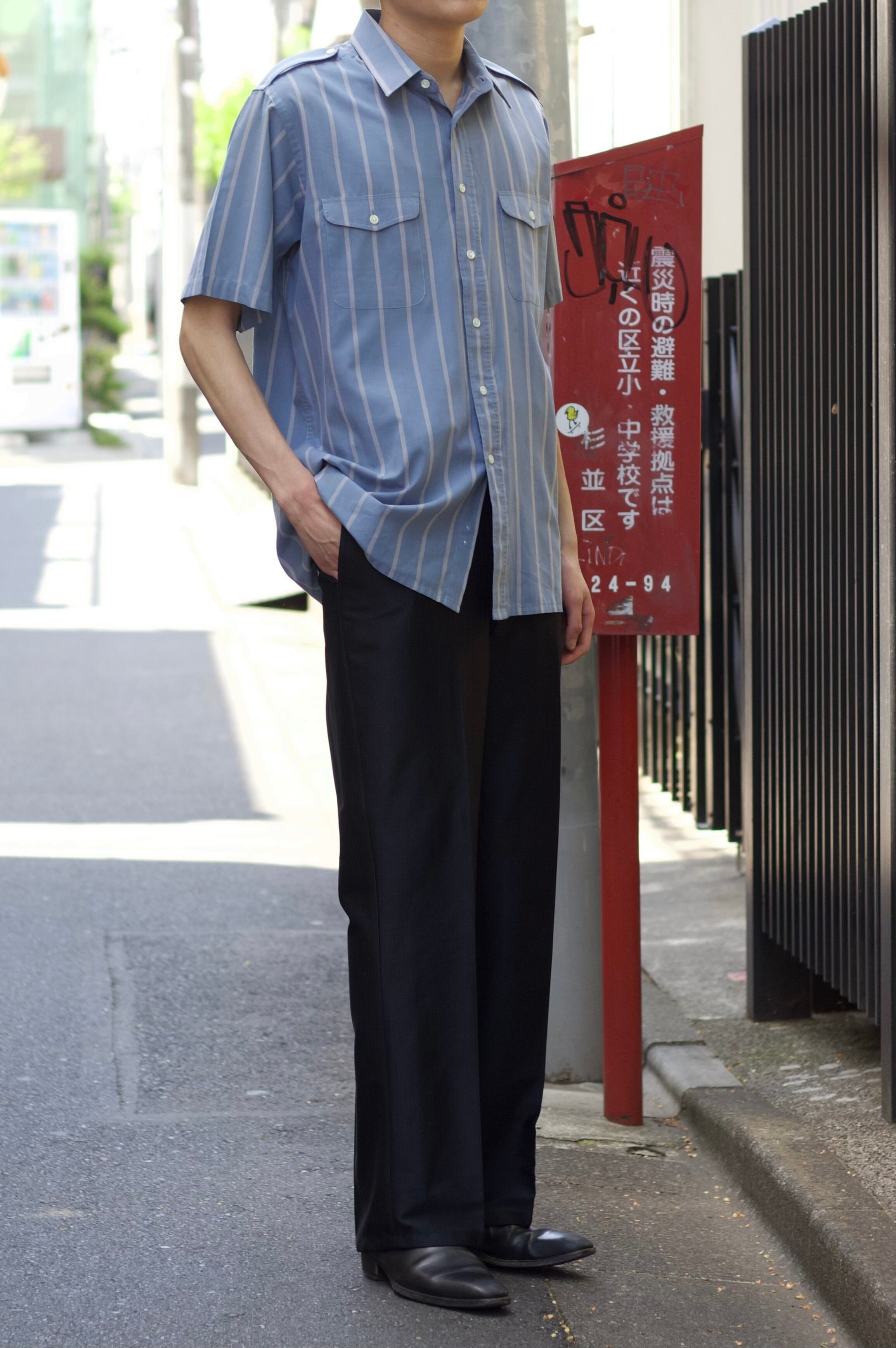 淡いブルーカラーにホワイトのストライプが走る、90年代Christian Diorの半袖シャツ。