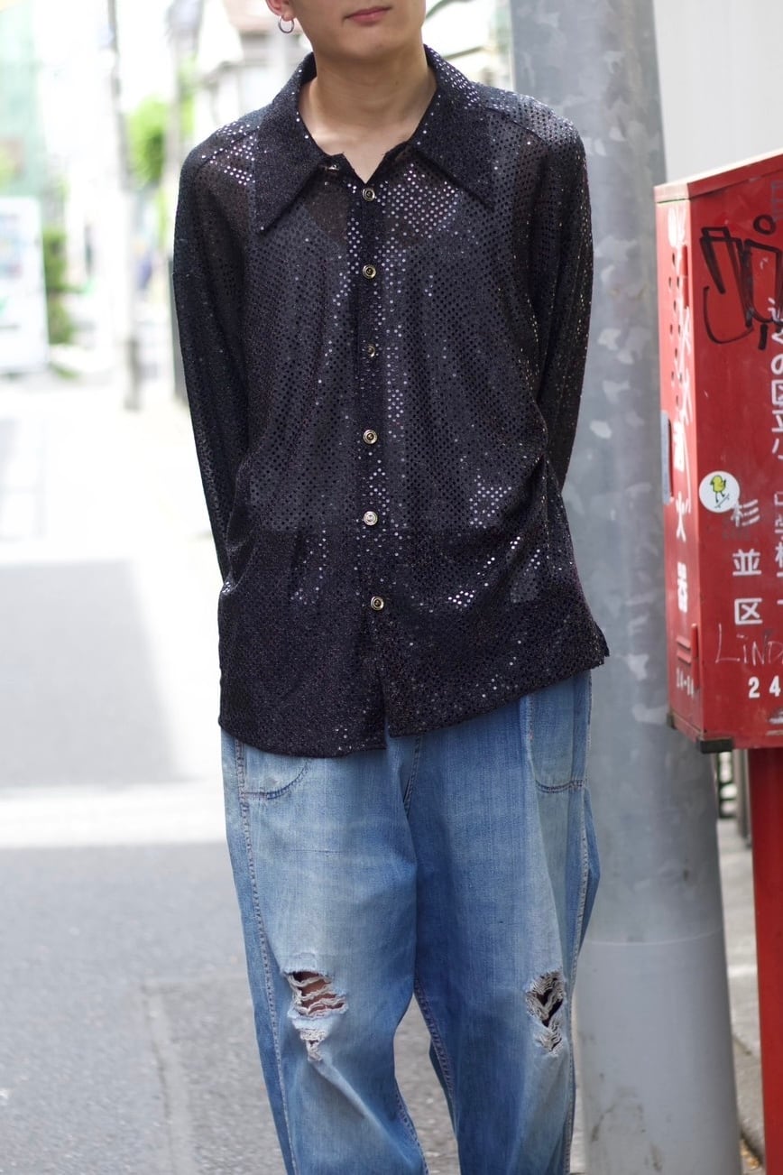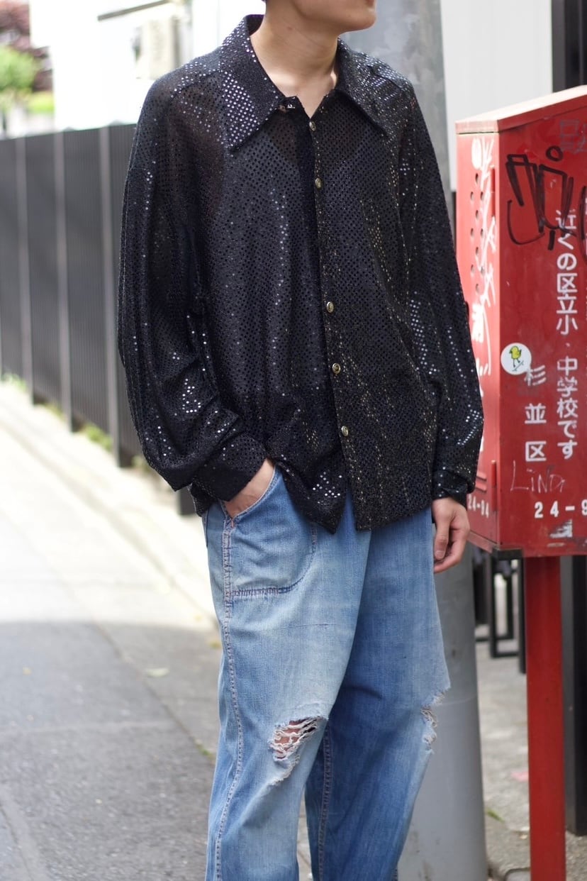1990s vintage "DILLIN" sequins and sheer design shirts made in usa【CU-9317】