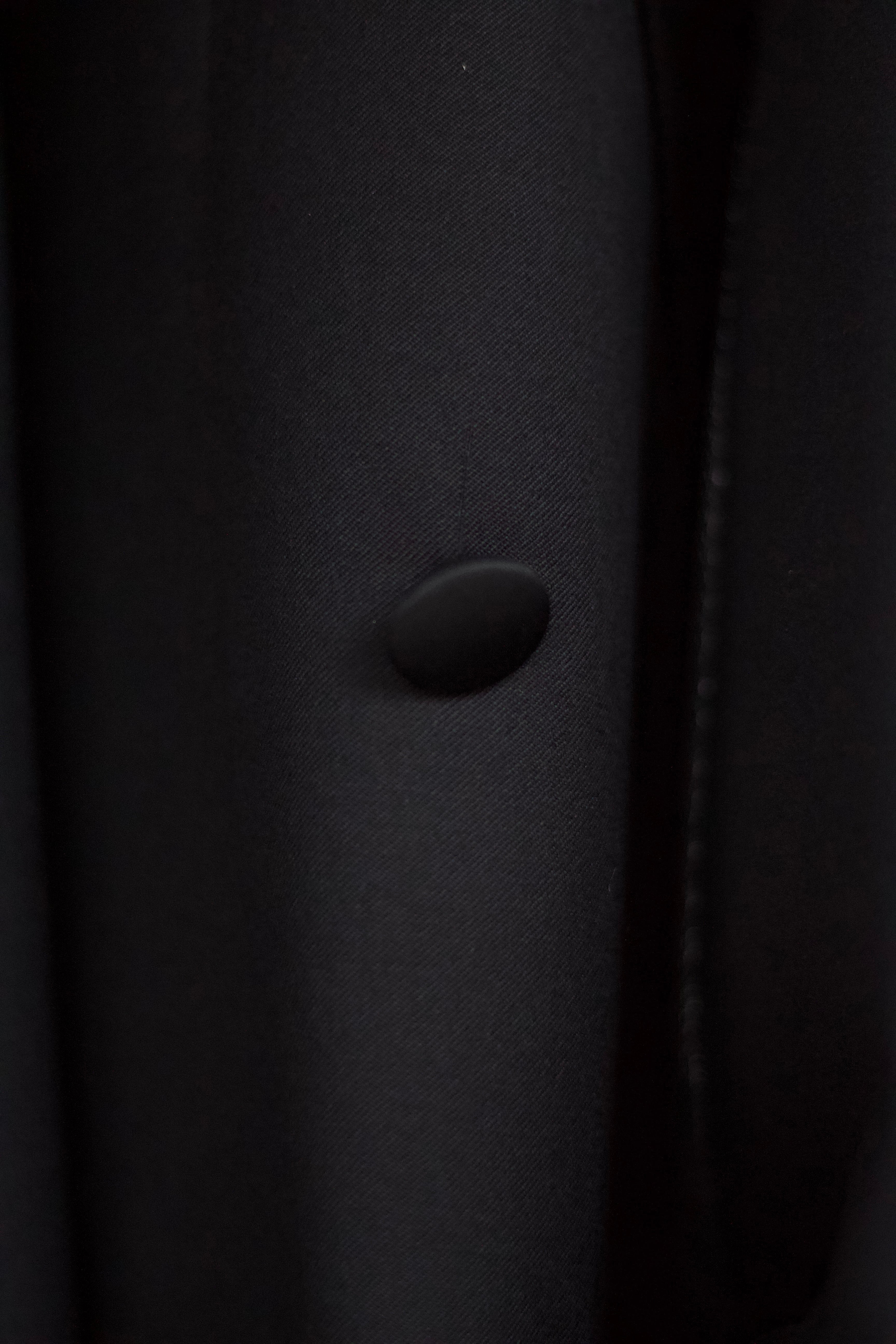 漆黒のボディにこの光沢が加わることで、通常のテーラードジャケットとは一線を画す、圧倒的な品格と色気を放ちます。