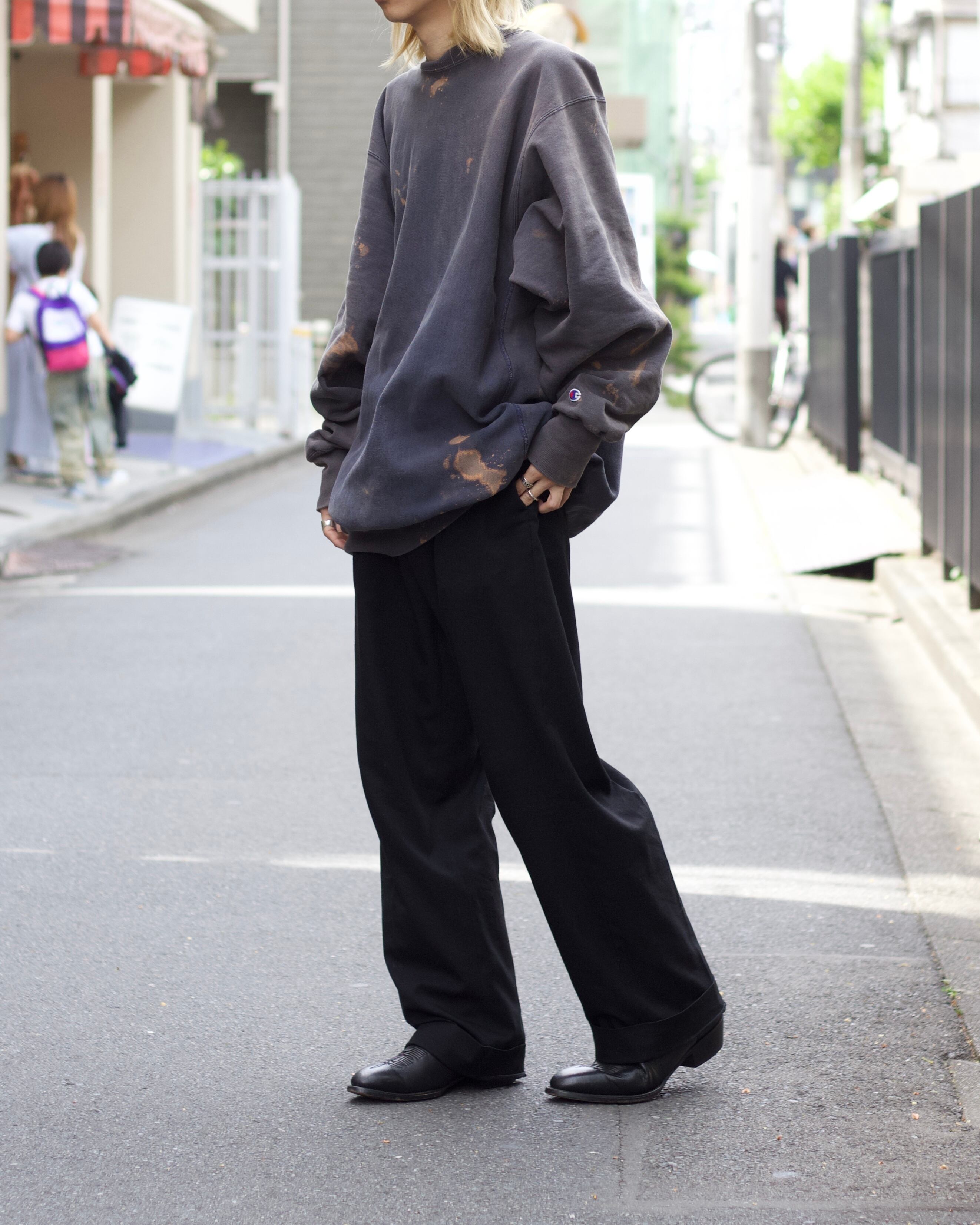 チャンピオンの代名詞「リバースウィーブ」に大胆なブリーチ加工を施した一着。