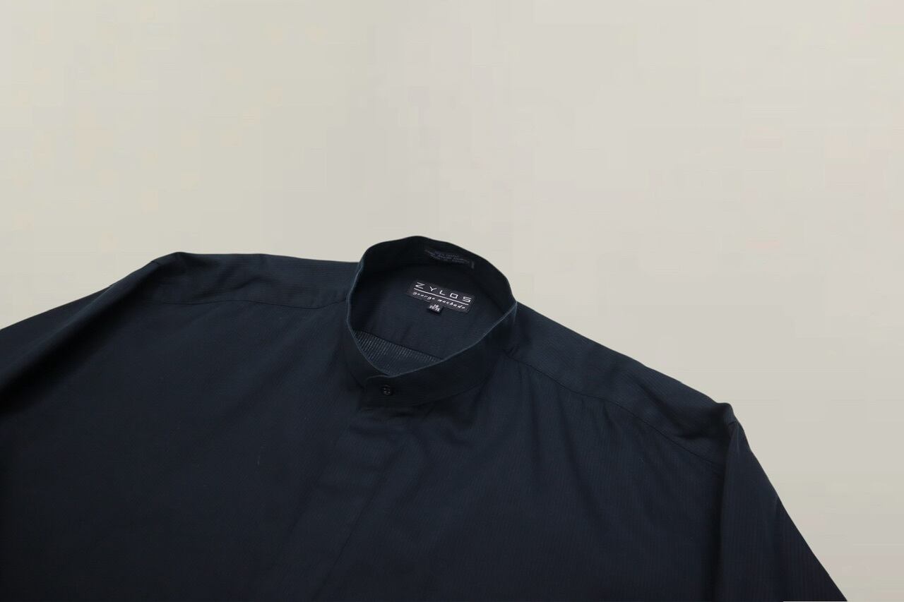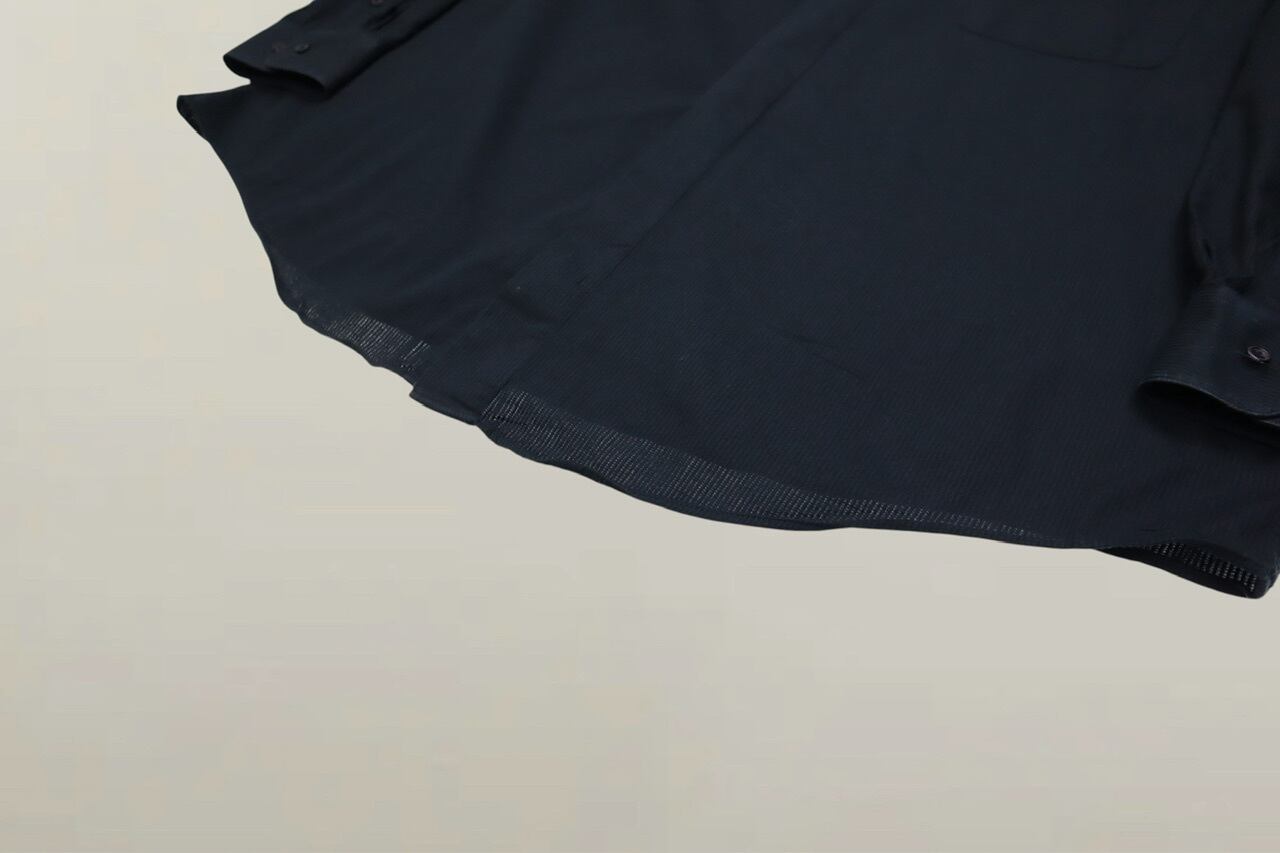 バンドカラーと比翼仕様でミニマムなデザイン。