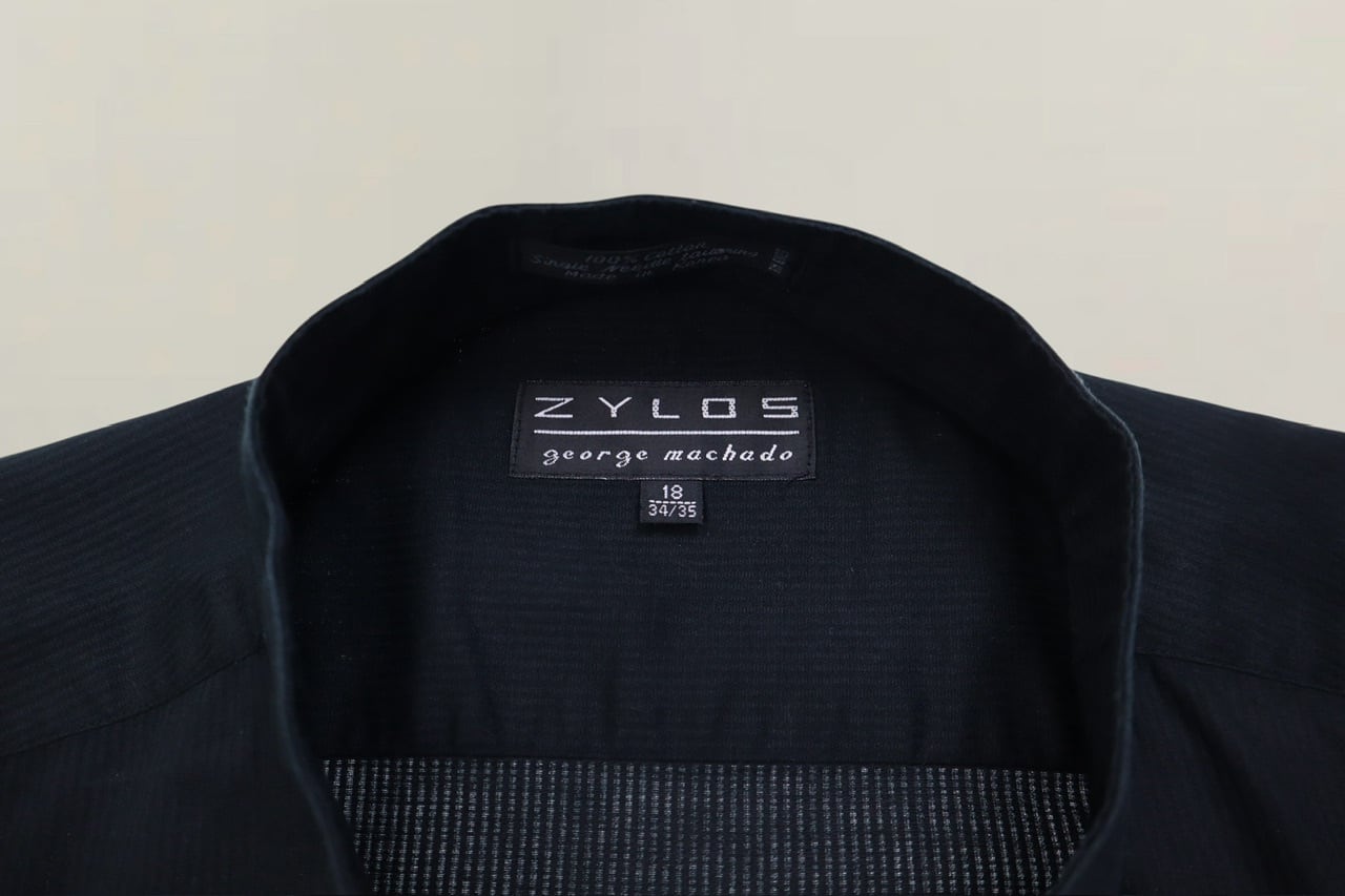 1990’s ZYLOS woven stripe fly front band-collar shirt【OTTK-5532】