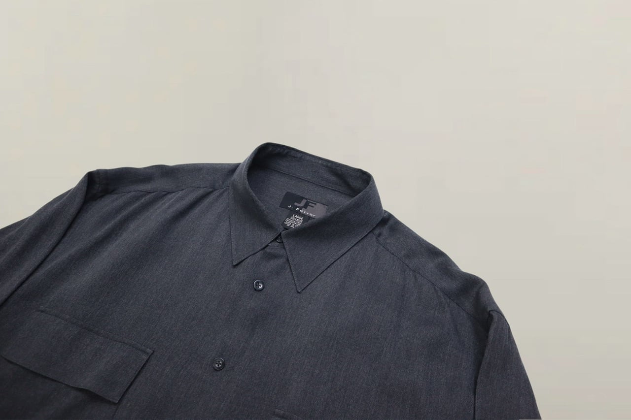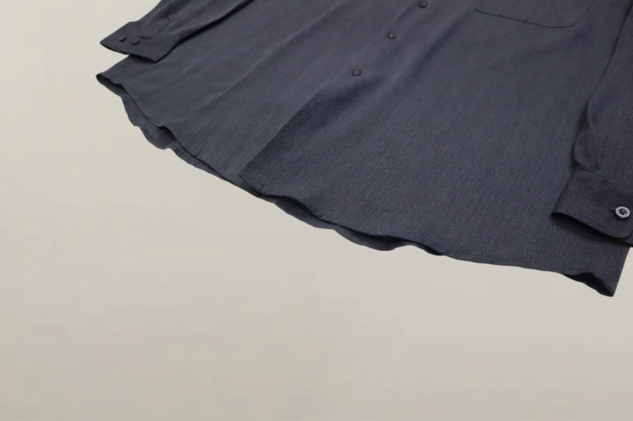 シルクとレーヨンが混紡したバンドカラーシャツ。
