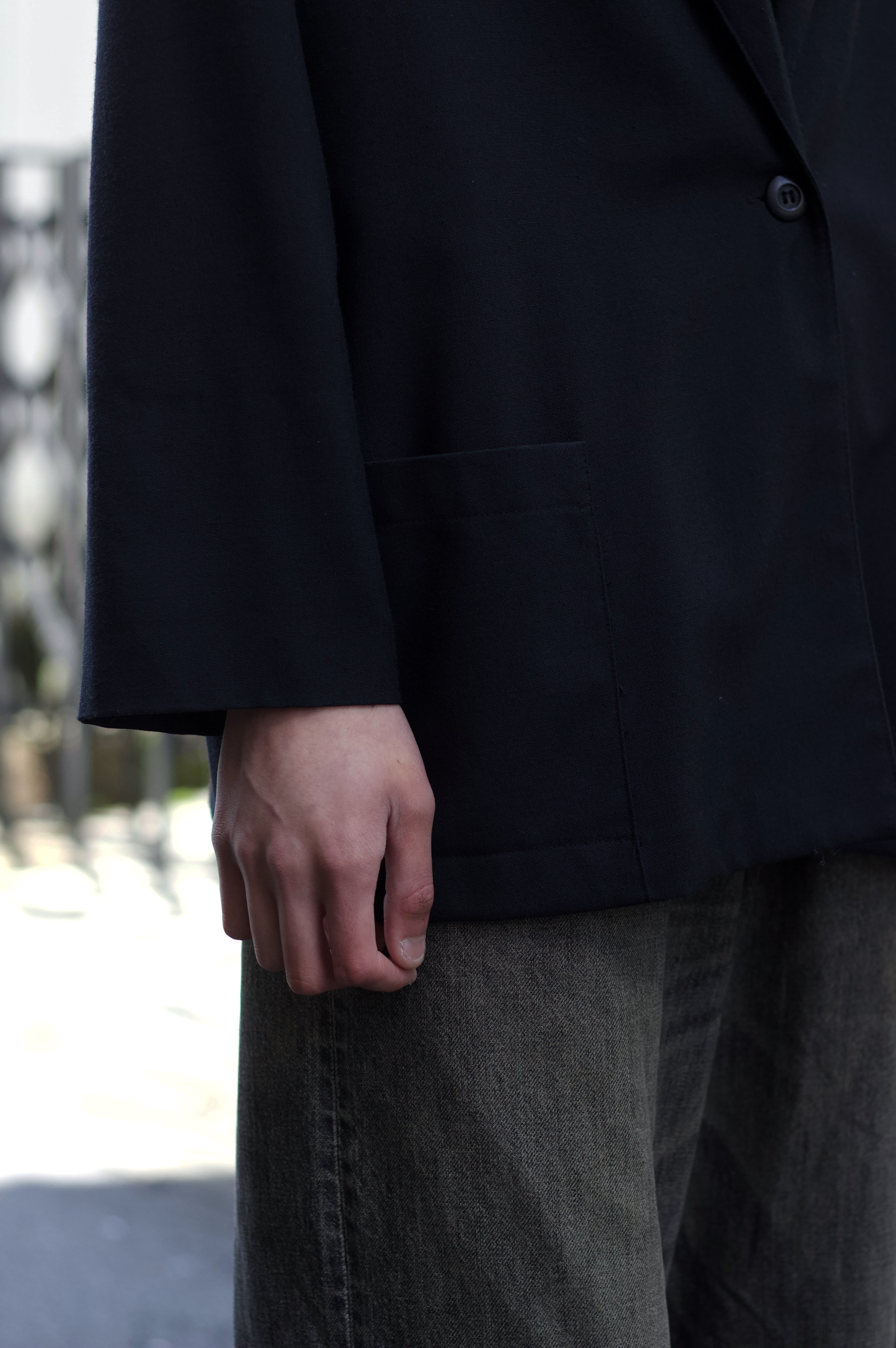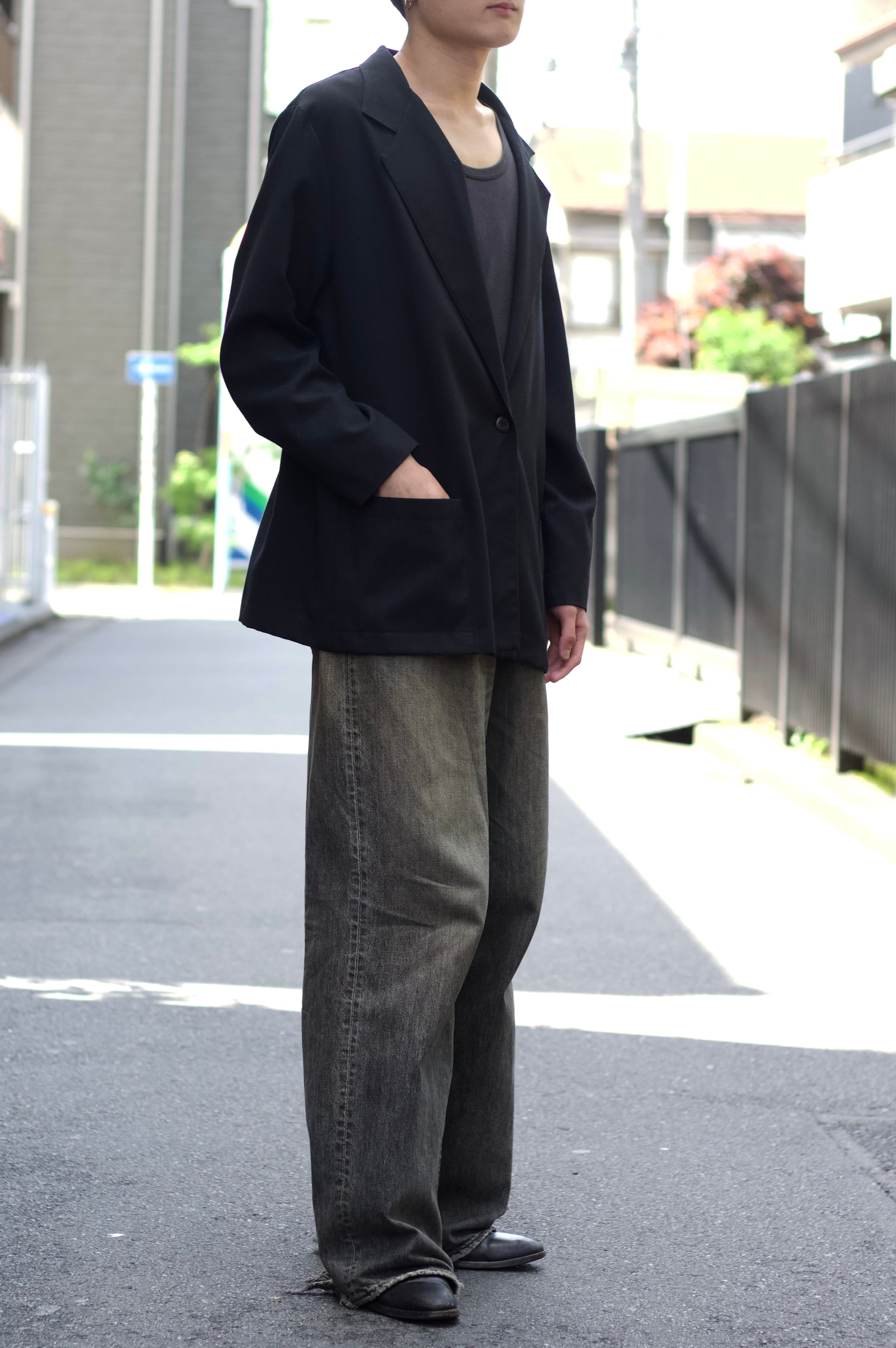春夏に嬉しいスタイルに組み込んでも重たくならないブラックサマージャケット、間違いないアイテムだと思います。