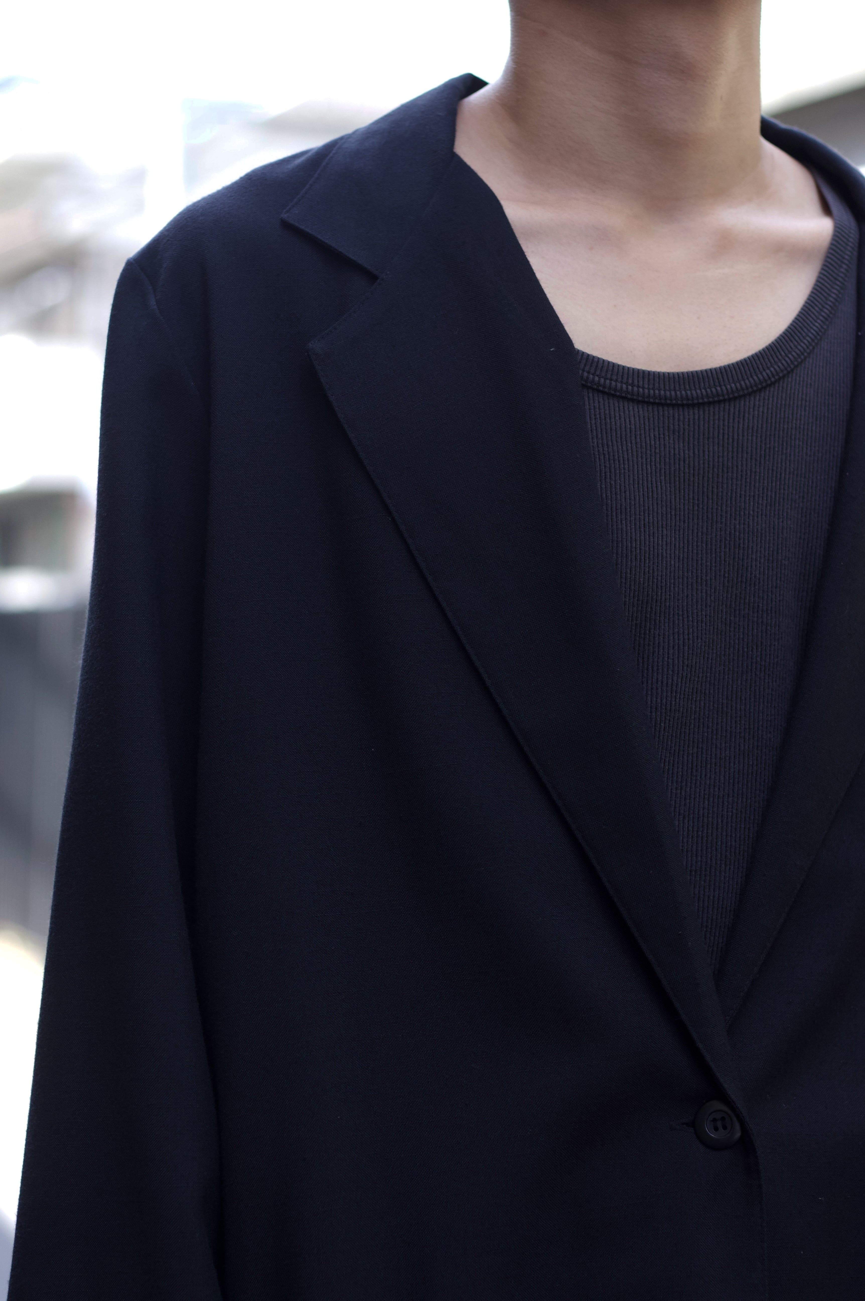 春夏仕様な黒のテーラードジャケット。