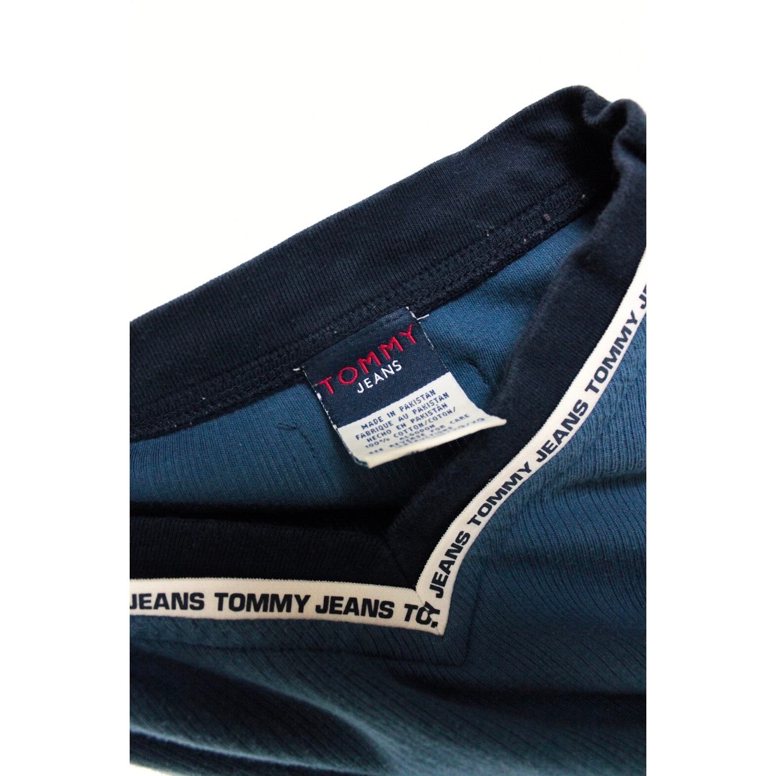 90年代頃のトミージーンズのVネックカットソー。襟周りのブランドロゴとアームのラインが気が利いています。このブランドらしい遊び心のあるデザインがgood。