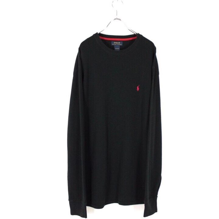 ポロラルフローレンのサーマルカットソーです。インナーに使うと保温性が高く、着心地も良いとされているサーマル、こちらは使いやすいブラックカラーです。一枚持っておくと、とても便利です。