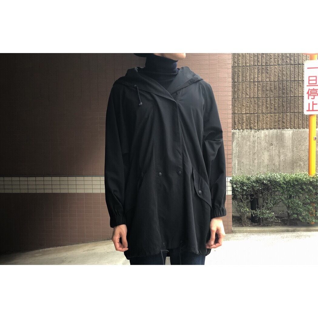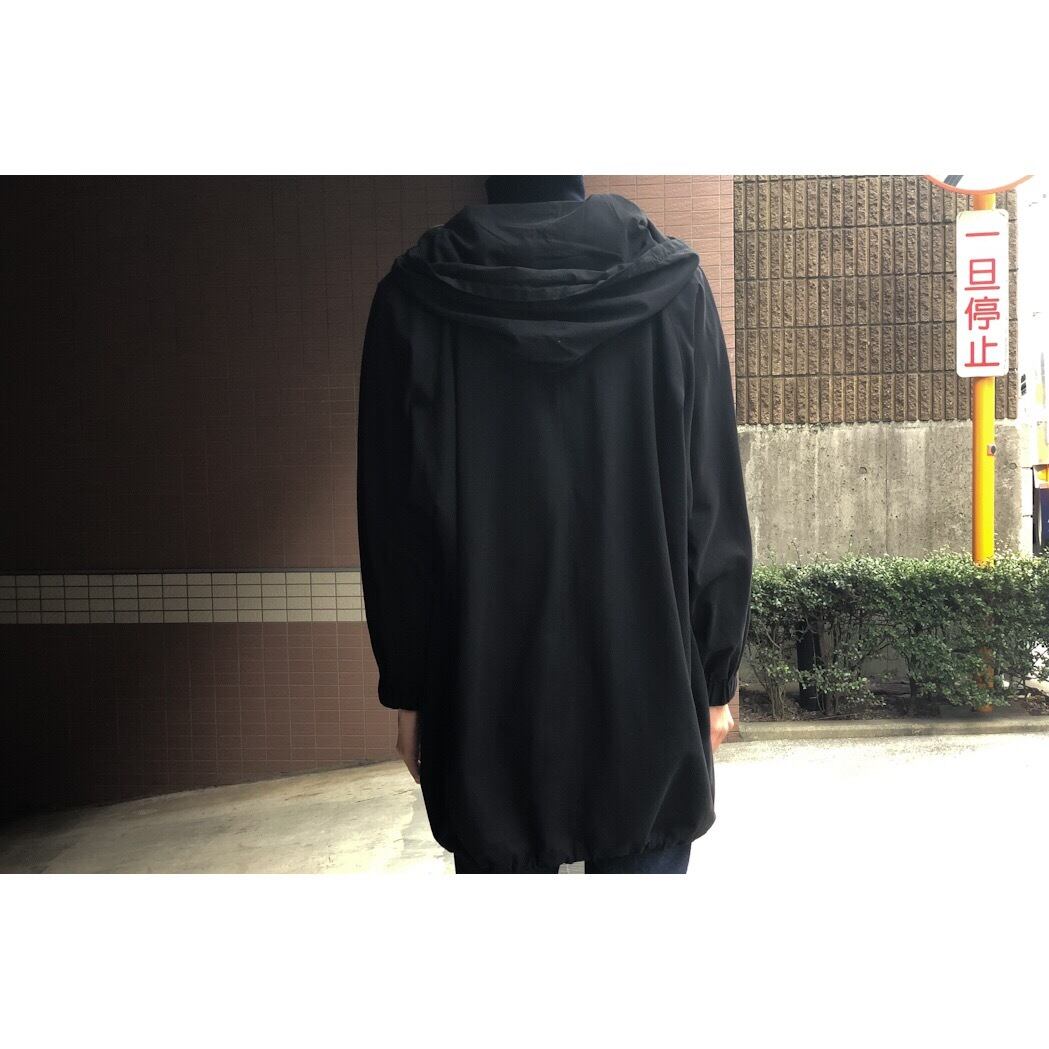 しっとりとした生地感で、ドレープがあり、落ち感が綺麗。身幅の広いオーバーシルエット。黒のスナップボタン。
