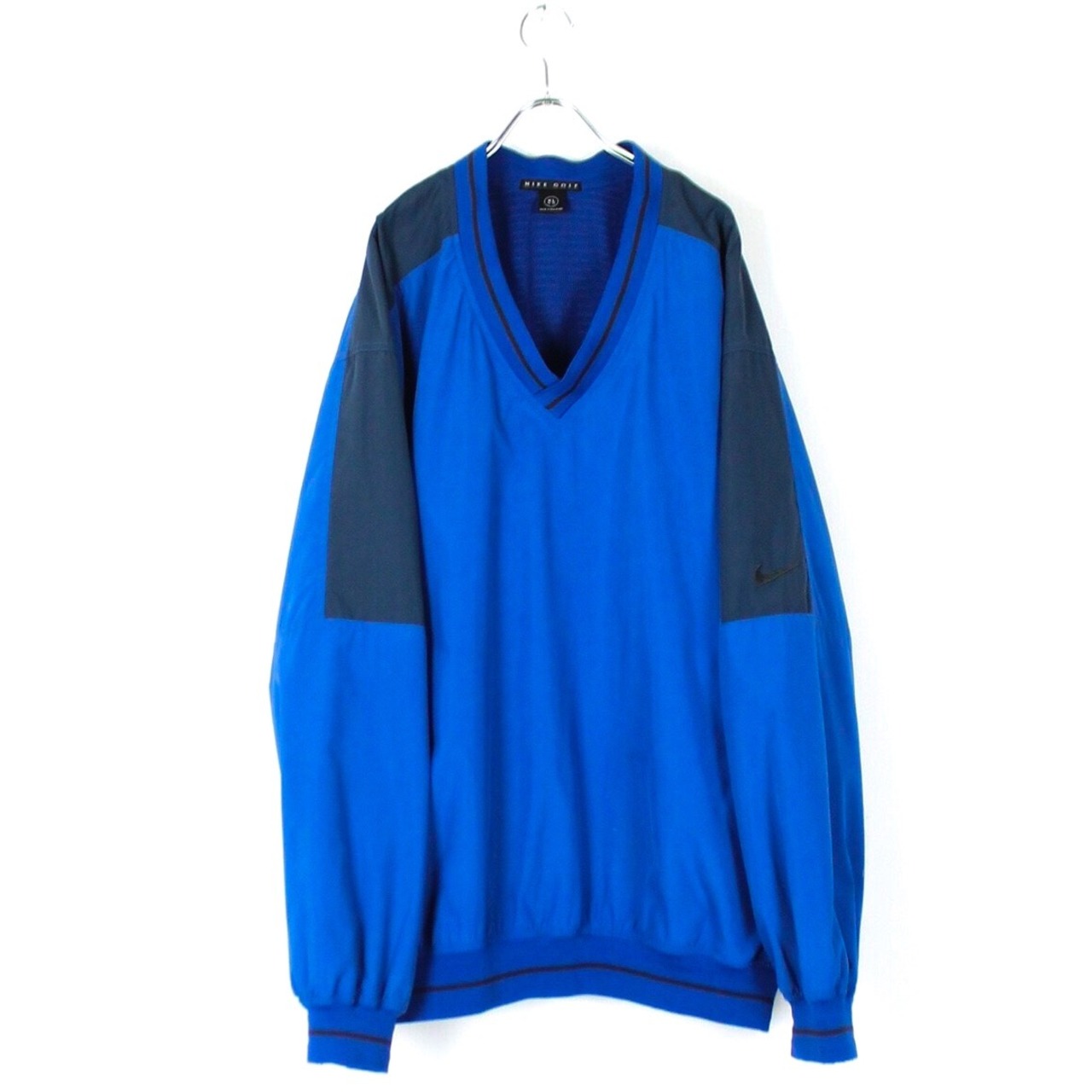 NIKE GOLFのナイロンプルオーバーシャツになります。スモークがかったブルーのボディに所々にダークグレーのラインが入るデザイン。 ザックリとしたシルエットで中にフーディーやシャツを入れたり、色々な着方ができそうです。