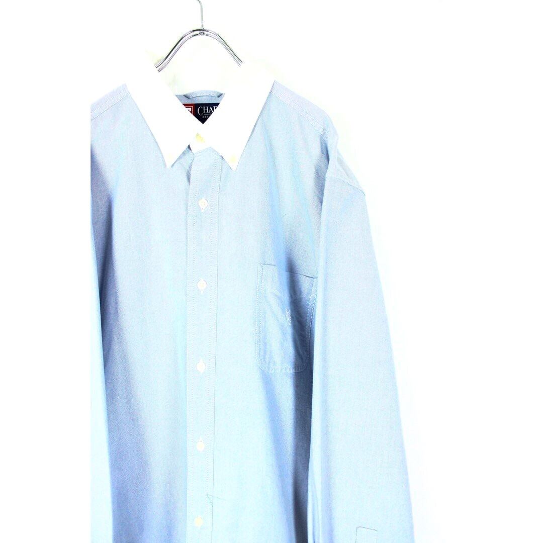 CHAPSの薄ブルーのボディにホワイトの襟の切り替えのB.D.シャツになります。