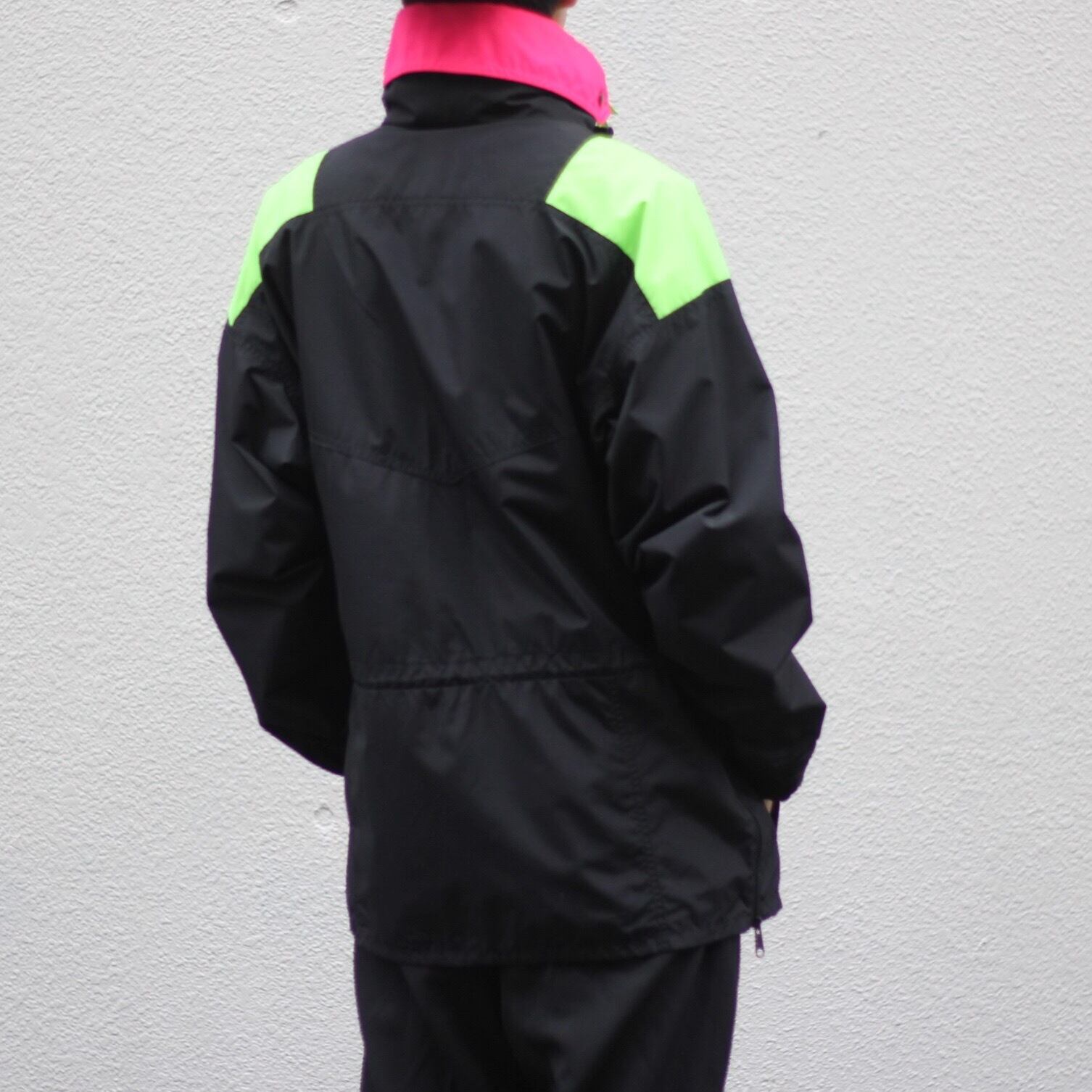 なんといっても目を惹く蛍光色のカラーリングが素晴らしい。サイドはジップ開閉できたり、フロント裾部分もジップによりシルエットの変化を楽しめます。