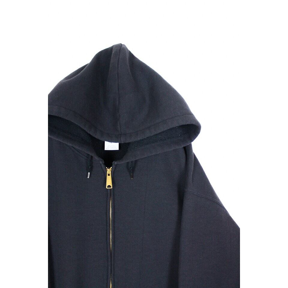 使い勝手の良いオールブラックのジップアップフーディ。