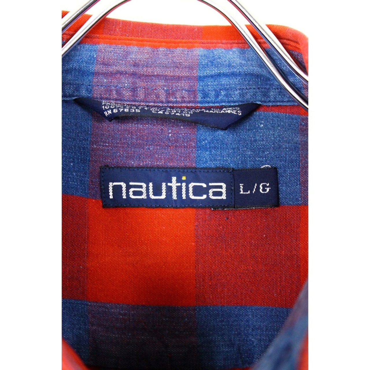 90's nautica のブロックチェックパターンシャツになります。赤青のチェックパターンがアメカジライクな一着。