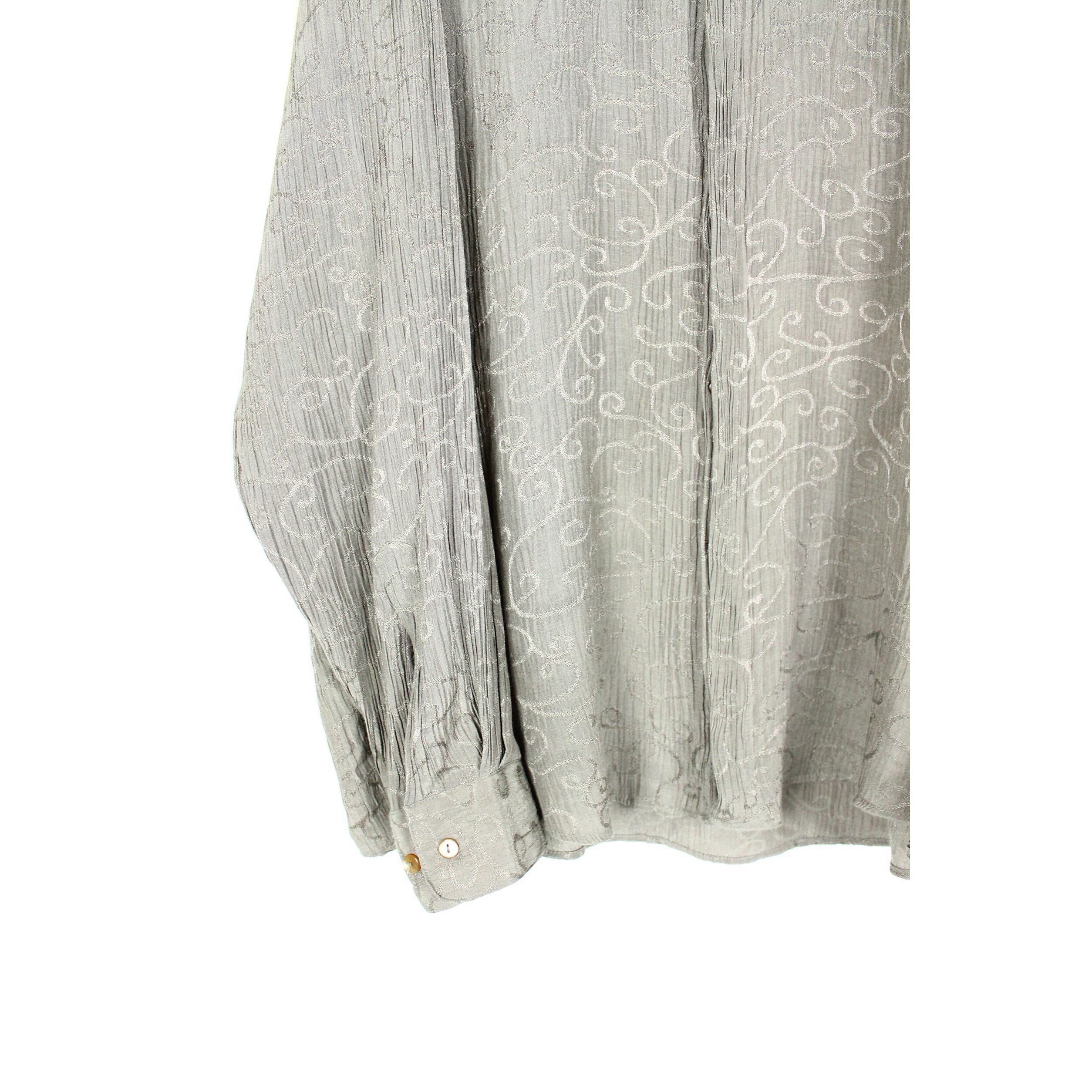 レーヨンアートパターンプリーツデザインバンドカラーシャツのご紹介です。