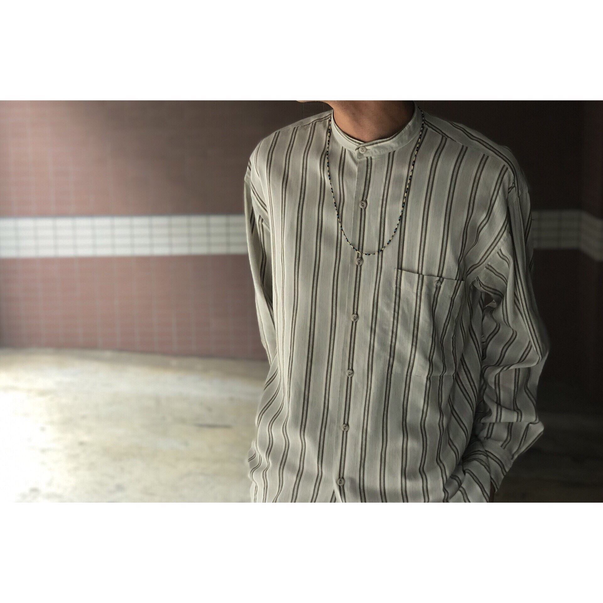 同じストライプでも襟がないだけで雰囲気ががらっと変わりますね。かっちりした印象が少なく程よく力の抜けた良いシャツです。