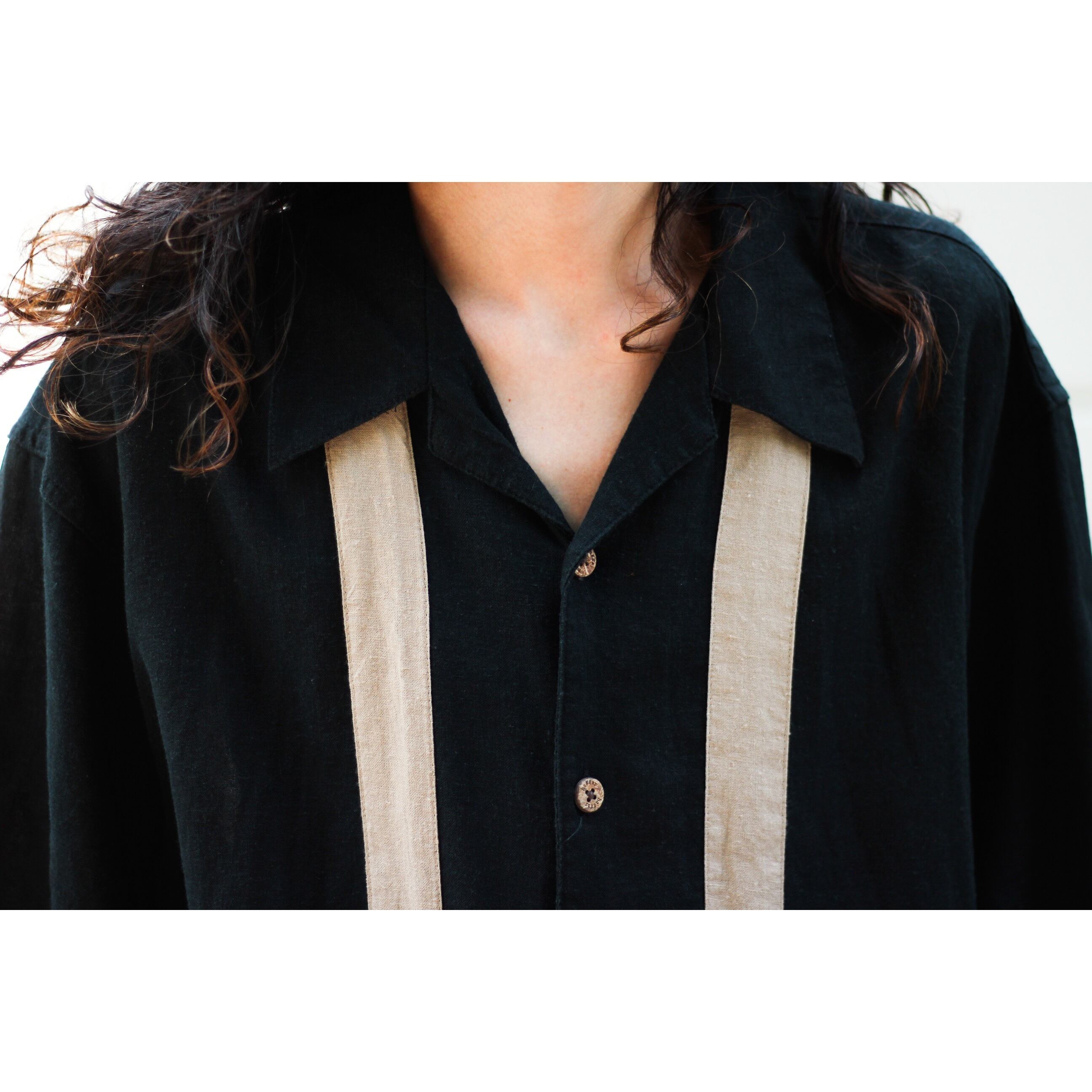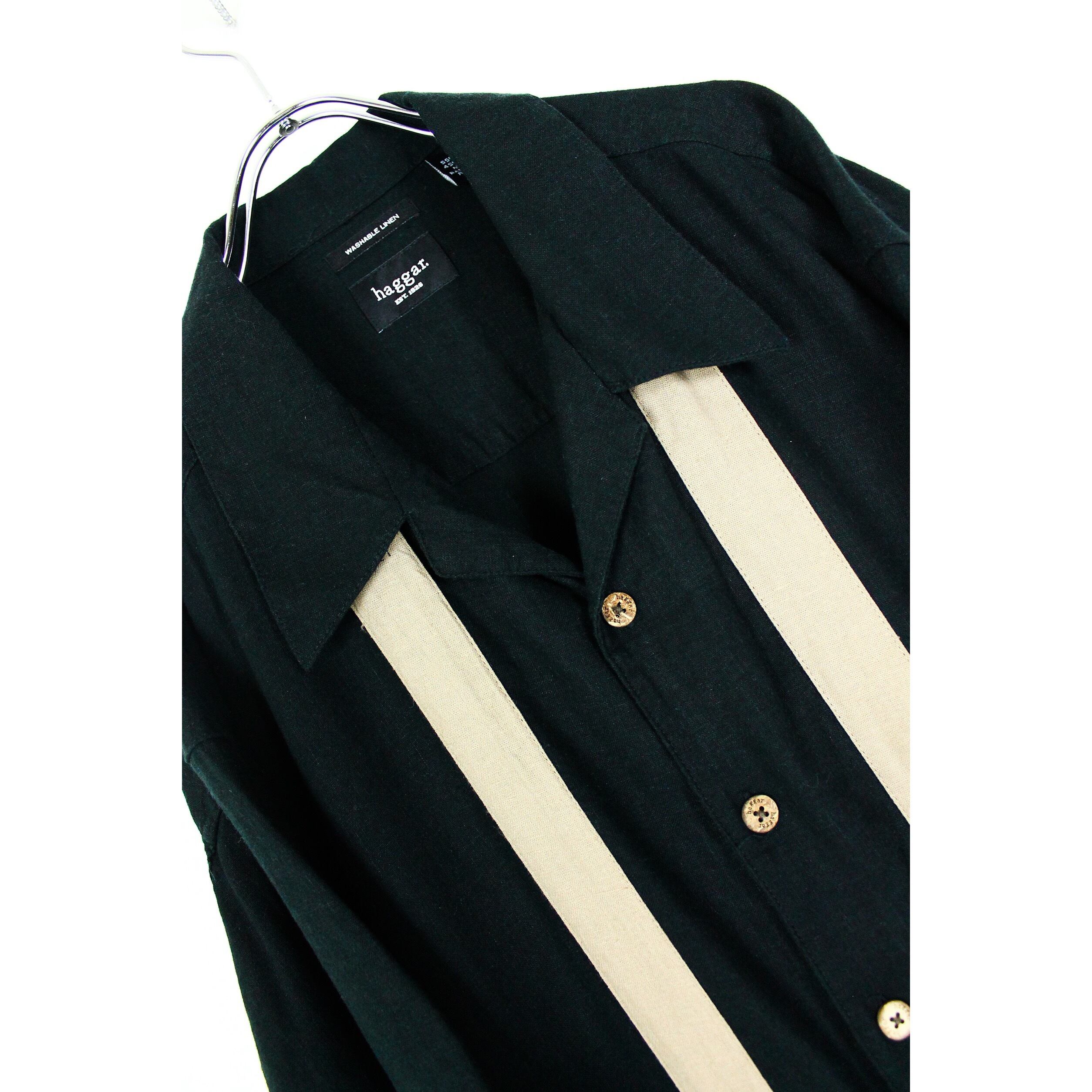 S/S haggar オーバーサイズ リネン2トーンオープンカラーシャツ 【OT-0251】