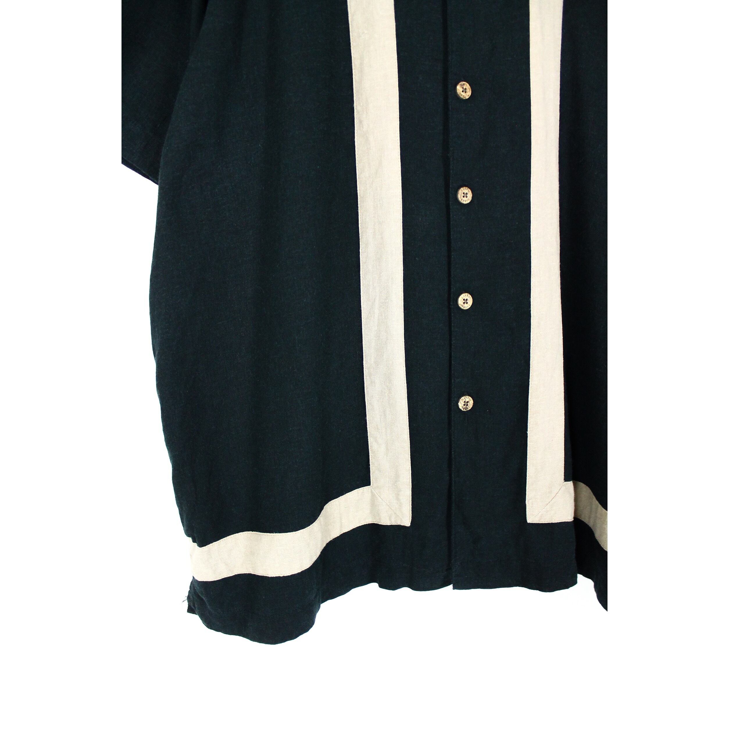S/S haggar オーバーサイズ リネン2トーンラインデザインオープンカラーシャツ 【OT-0255】