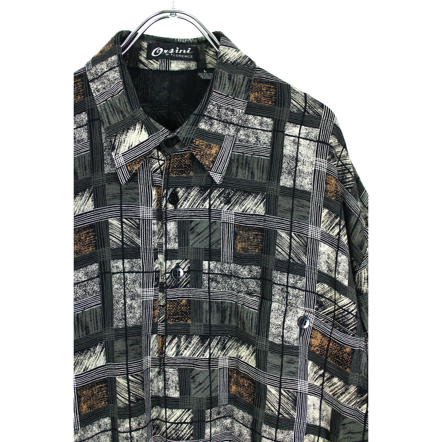 レーヨン総柄デザインプルオーバーシャツ 【ME-0434】