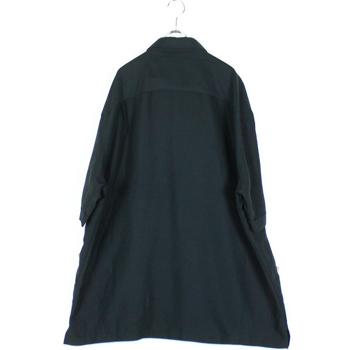 こちらオーバーサイズですが、ファブリックはレーヨンとポリエステルの混紡素材なので、素晴らしいドレープ感を体感できます。また着丈が長いので、男性の方はもちろん女性の方がワンピース感覚で着用しても可愛いですね。