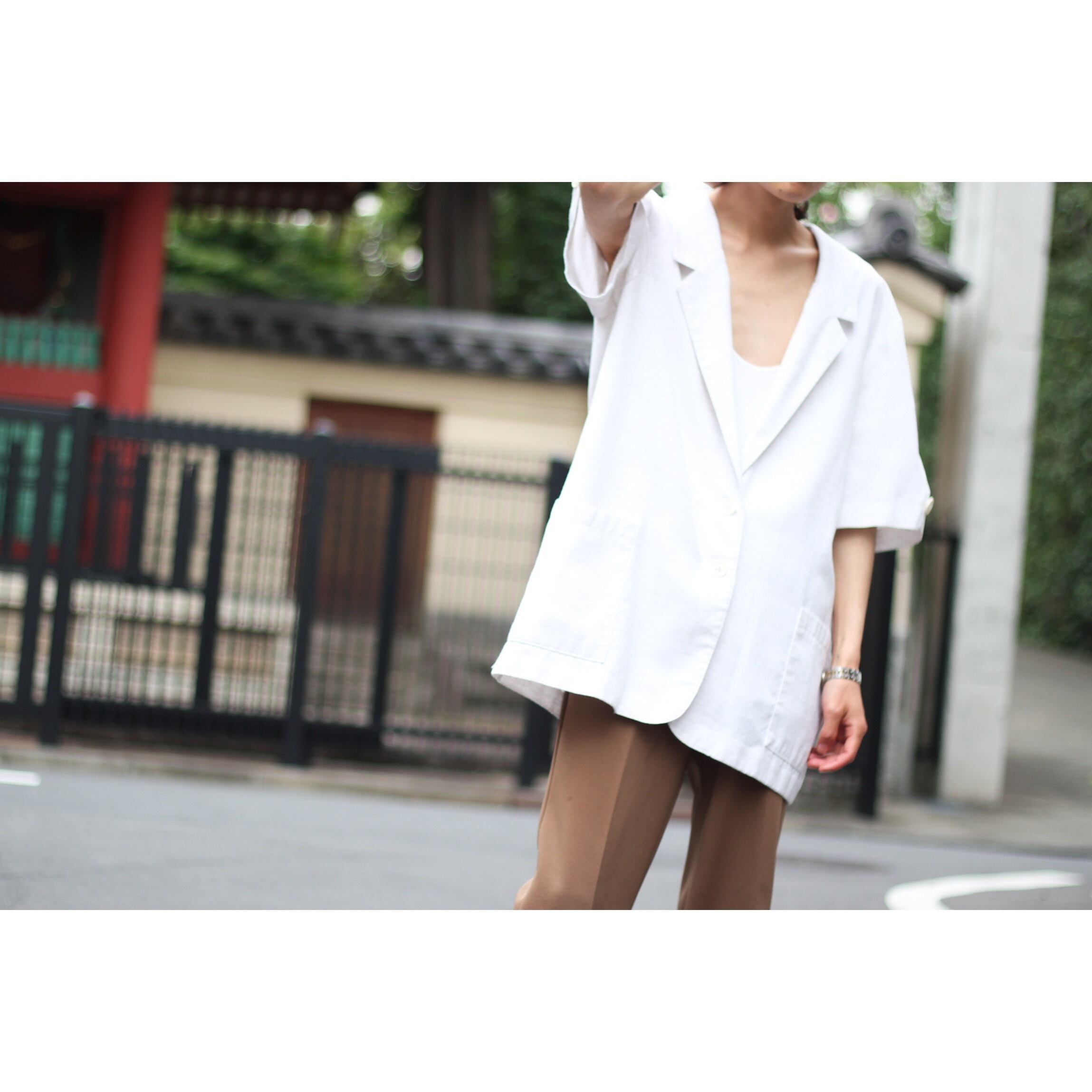 長袖のテーラードジャケットはプレーンなアイテムですが半袖なだけですごく新鮮。