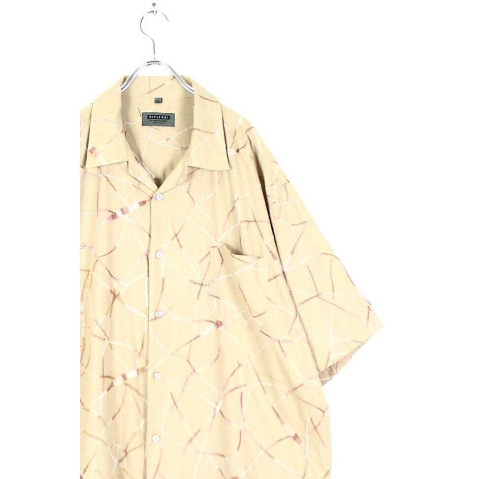 S/S オーバーサイズ ベージュ リネン刺繍柄オープンカラーシャツ 【OT-0315】