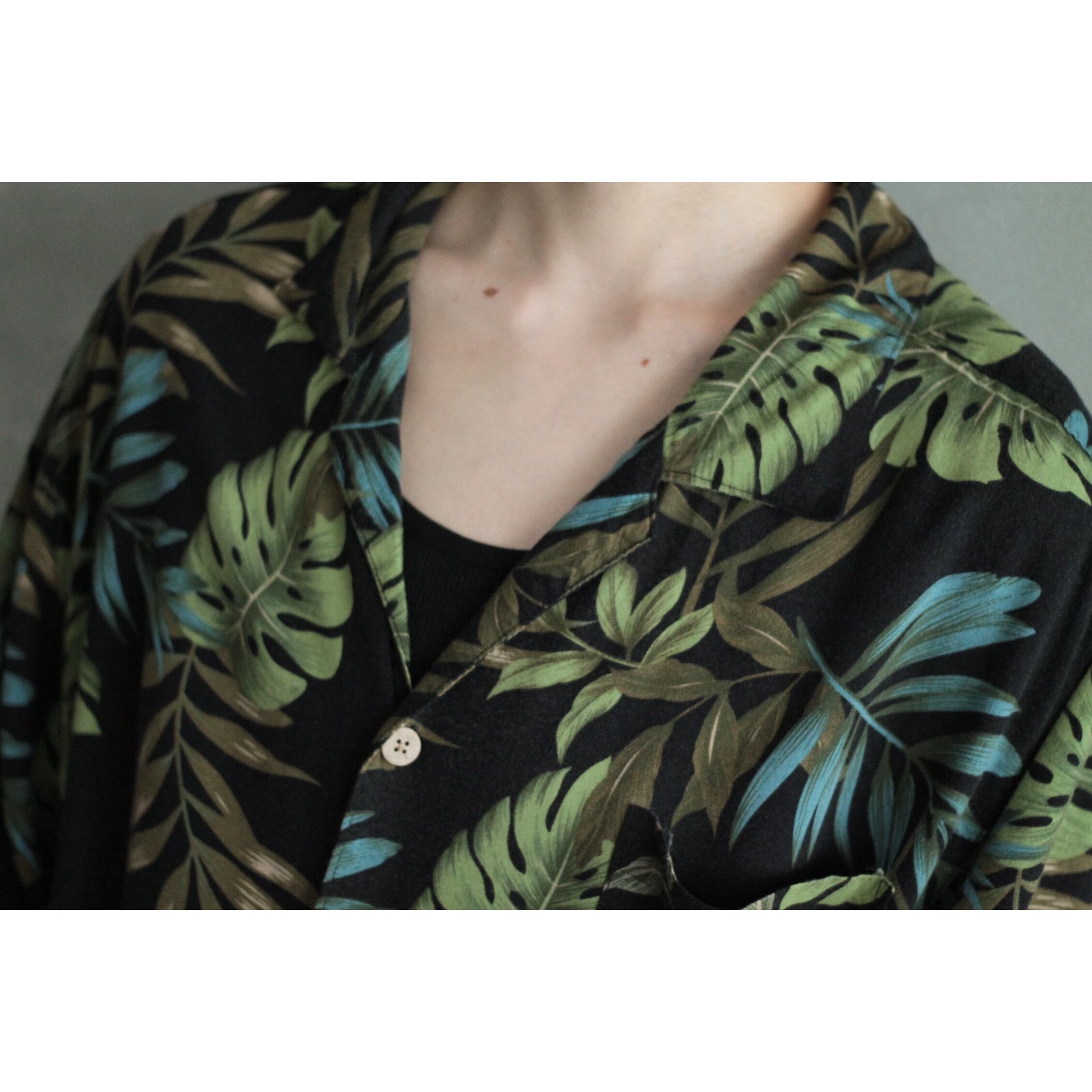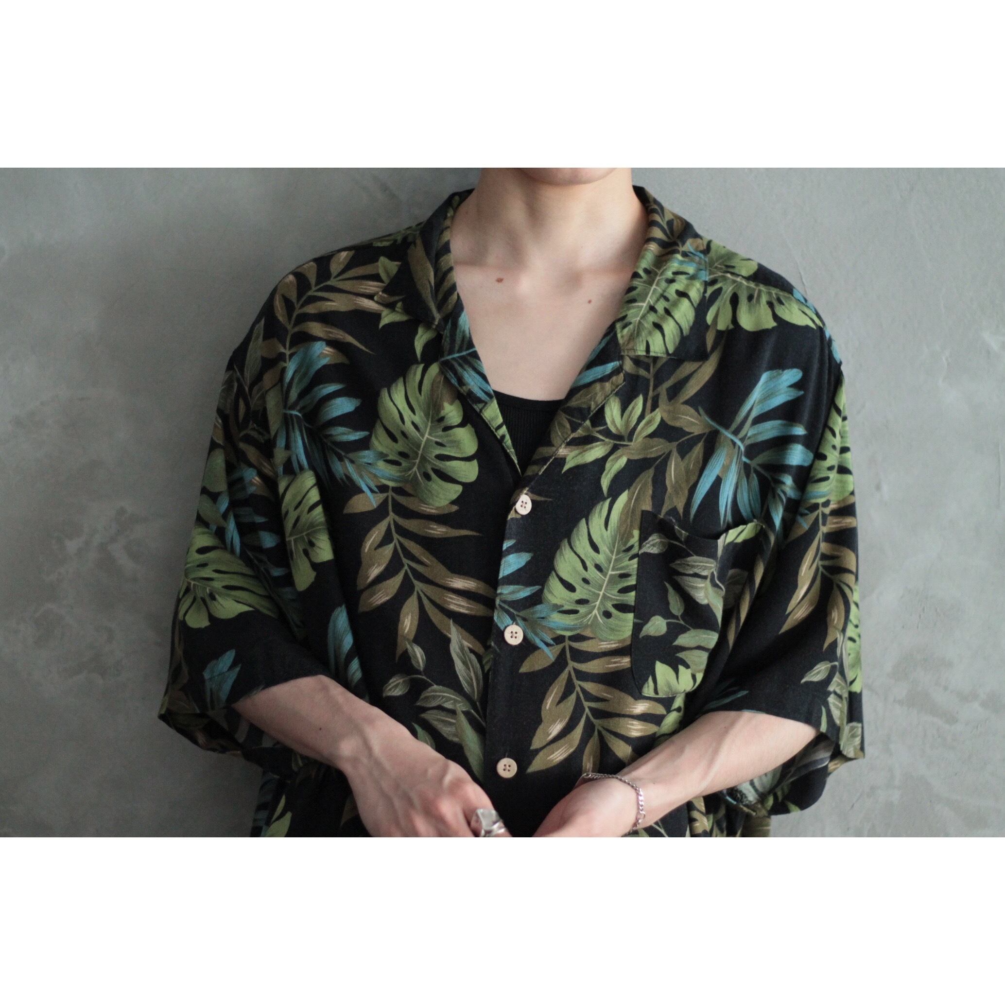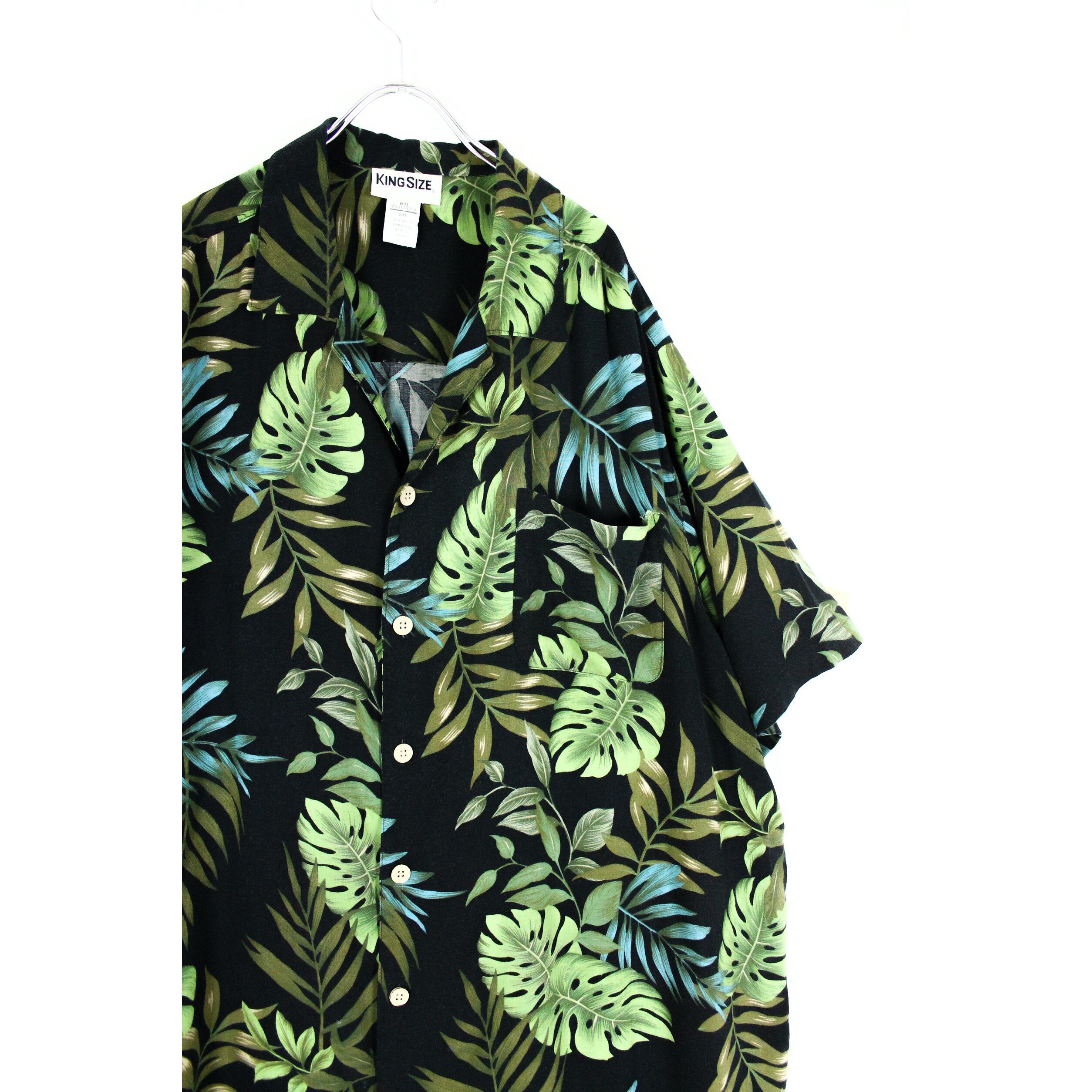 KING SIZE 2XL オーバーサイズ レーヨンボタニカルパターンオープンカラーアロハシャツ 【OT-0336】