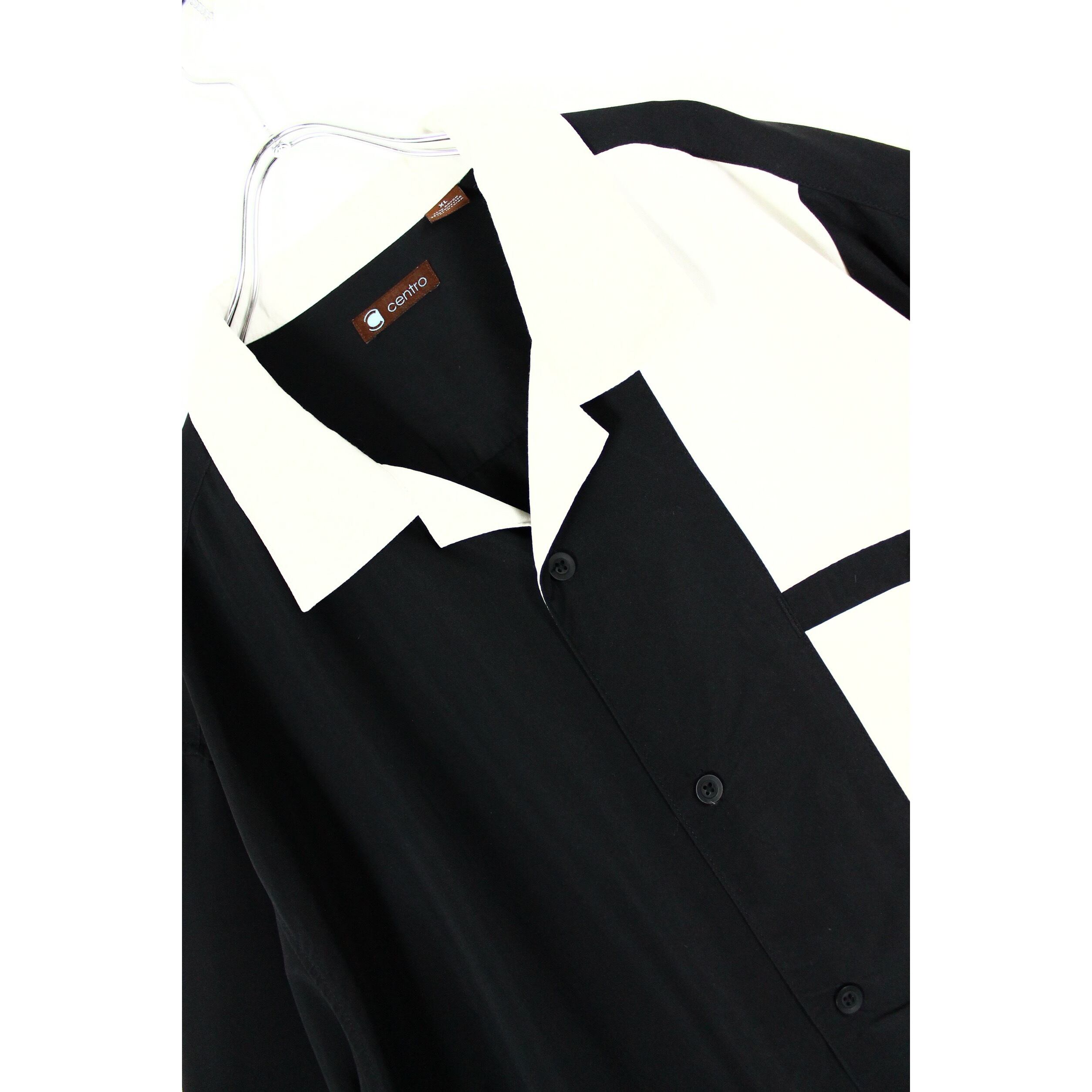 S/S レーヨン アシンメトリーデザイン ブラック×ホワイト 2トーン オープンカラーシャツ 【OT-0338】