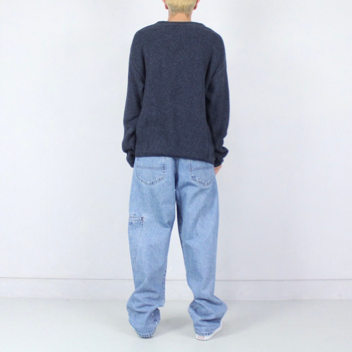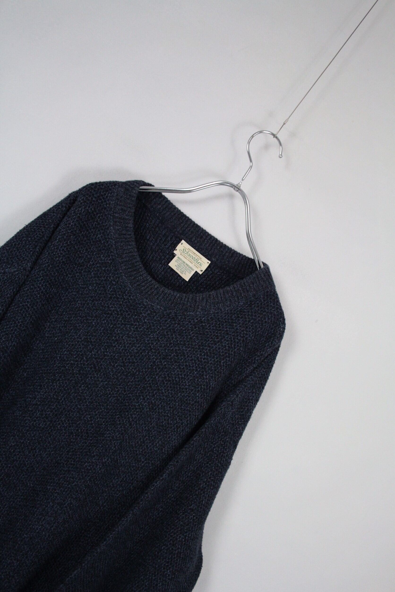 ネイビーカラー ボックスシルエット コットンクルーネックニット【FF-4298】