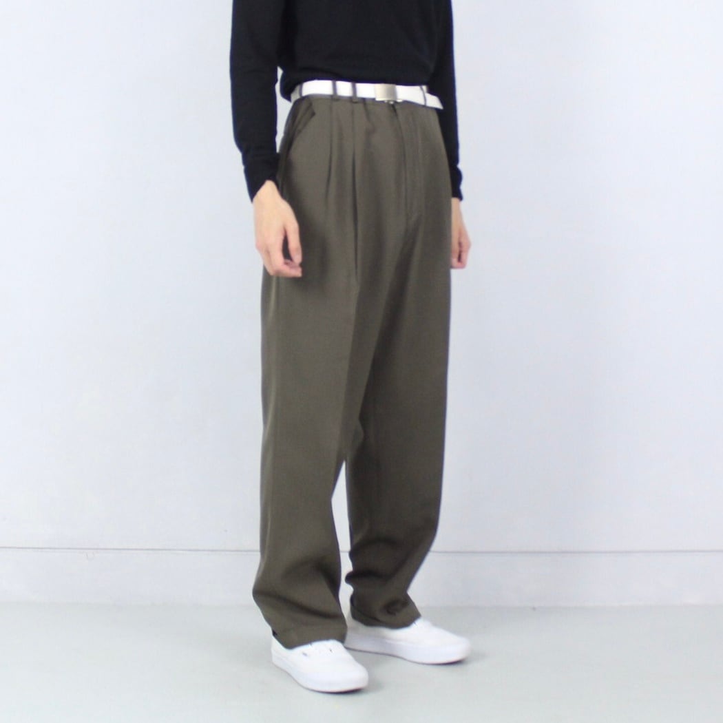 ダークオリーブカラー 2タックワイドスラックス【FF-4328】