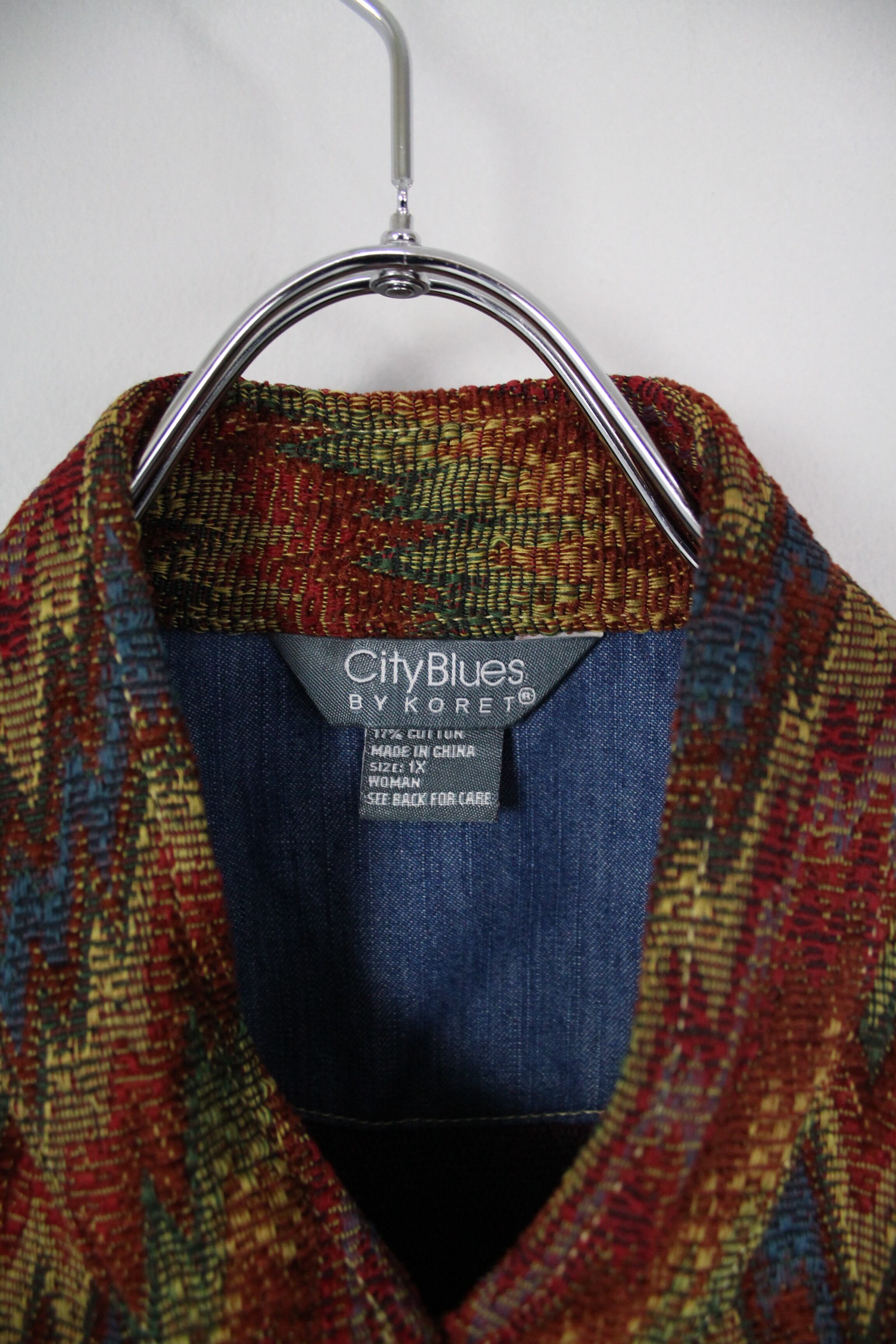 DEADSTOCK 未使用品 ゴブラン織 サイケ柄 デザインノーカラージャケット 【OT-3463】