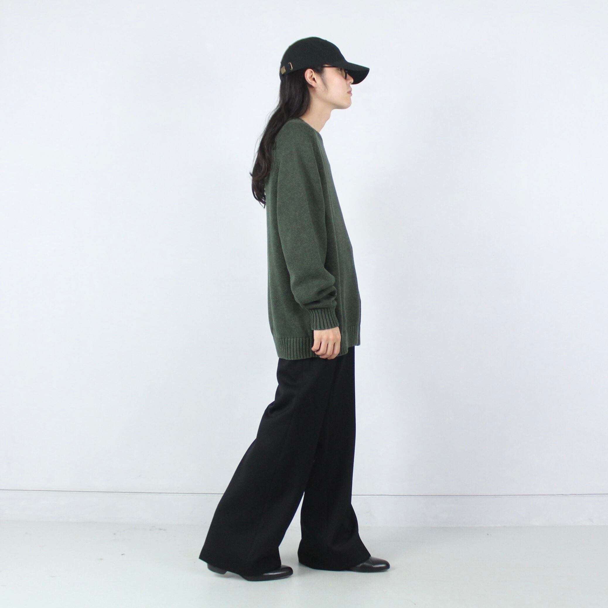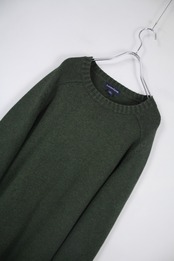 ミドルゲージ オーバーサイズ グリーン コットン ニットセーター 【OT-3513】