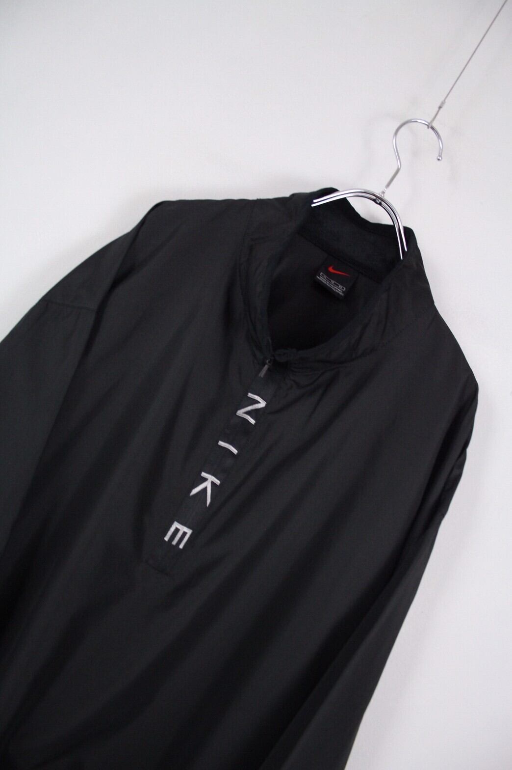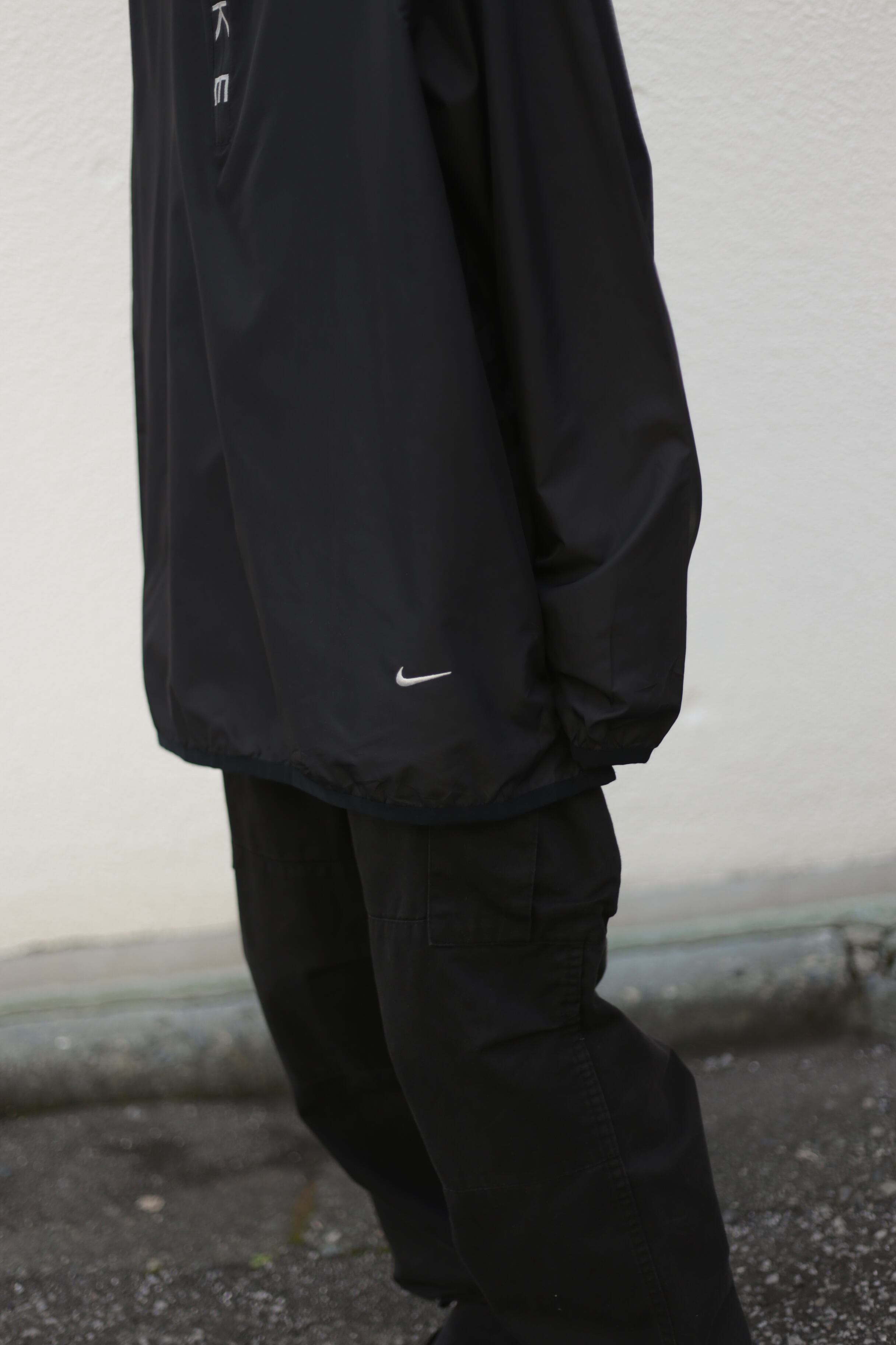 薄いナイロン地で軽い質感に加えてハーフジップ仕様のディテール。ジップ部分にはNIKEのロゴが配置され左右にはジップポケットも付いております。シンプルにカッコ良い造りですね。