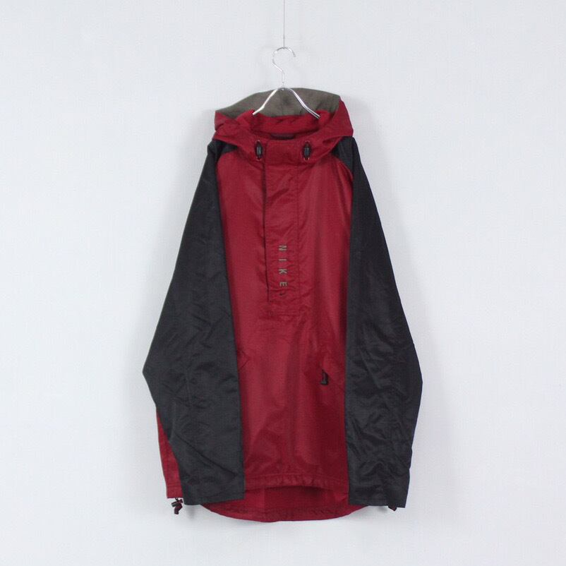 NIKE オーバーサイズ ブラック×レッド ナイロンアノラックパーカー【FF-4356】