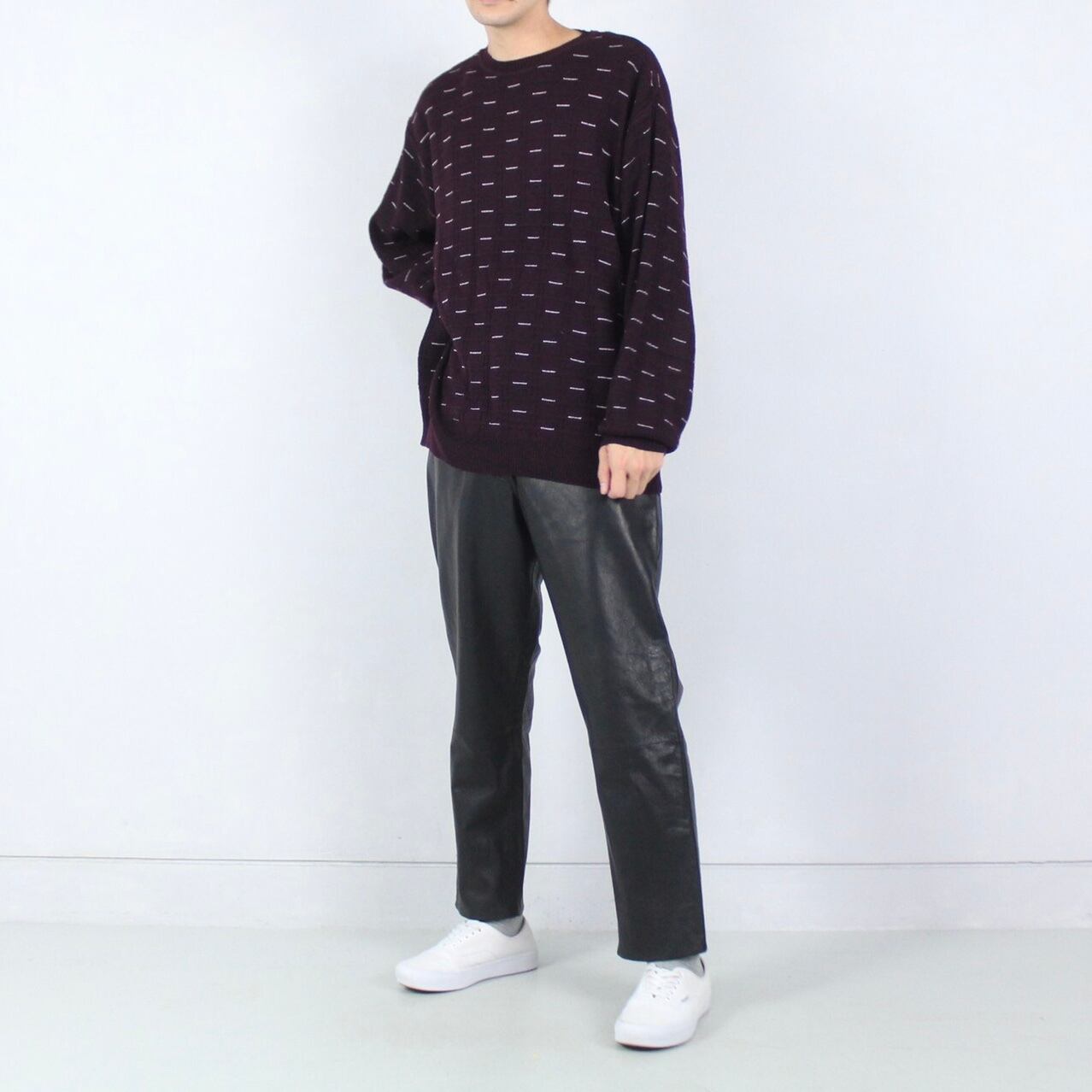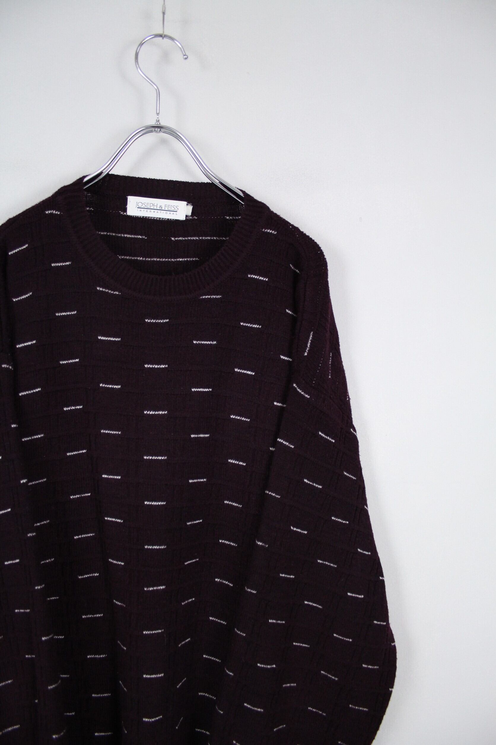 ダークボルドー×ホワイト ボックスシルエット 総柄ニットセーター【CO-1402】