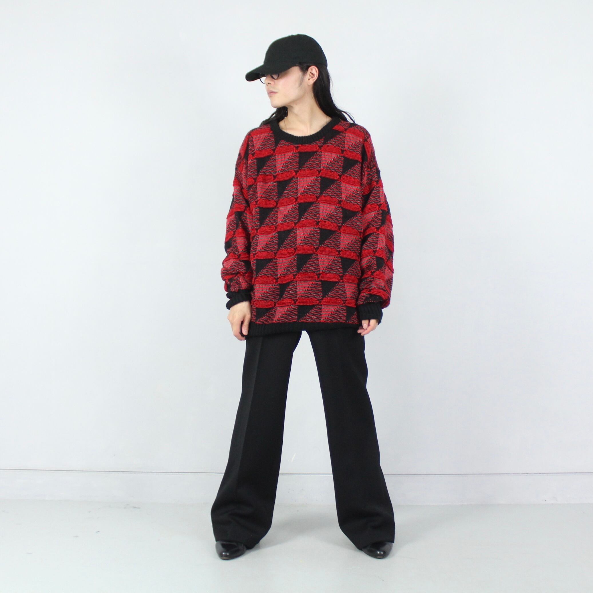 レッド×ブラック アートパターン 3D ニットセーター【OT-3528】