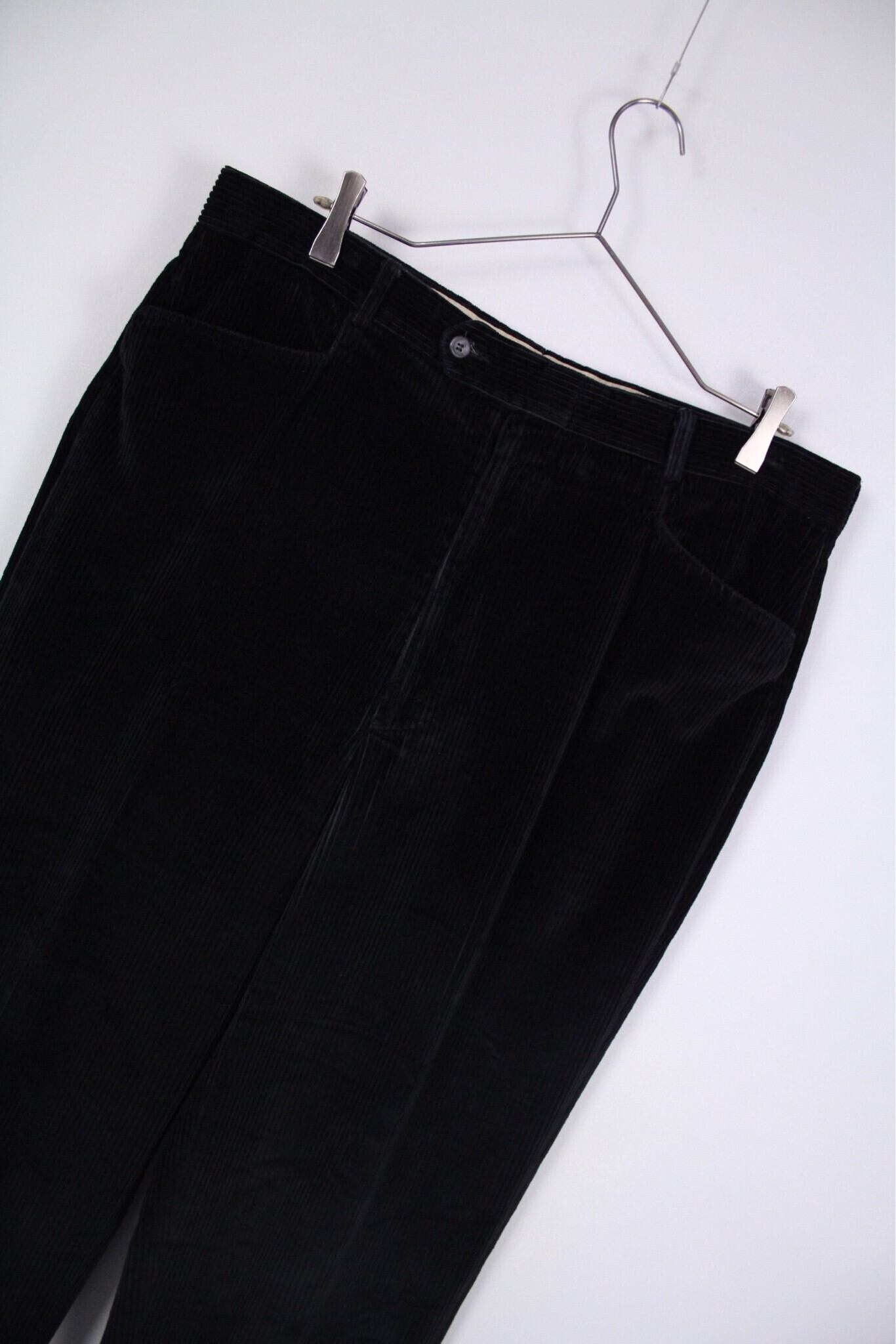 ワイドシルエット ブラック 太畝コーデュロイパンツ【FF-4366】