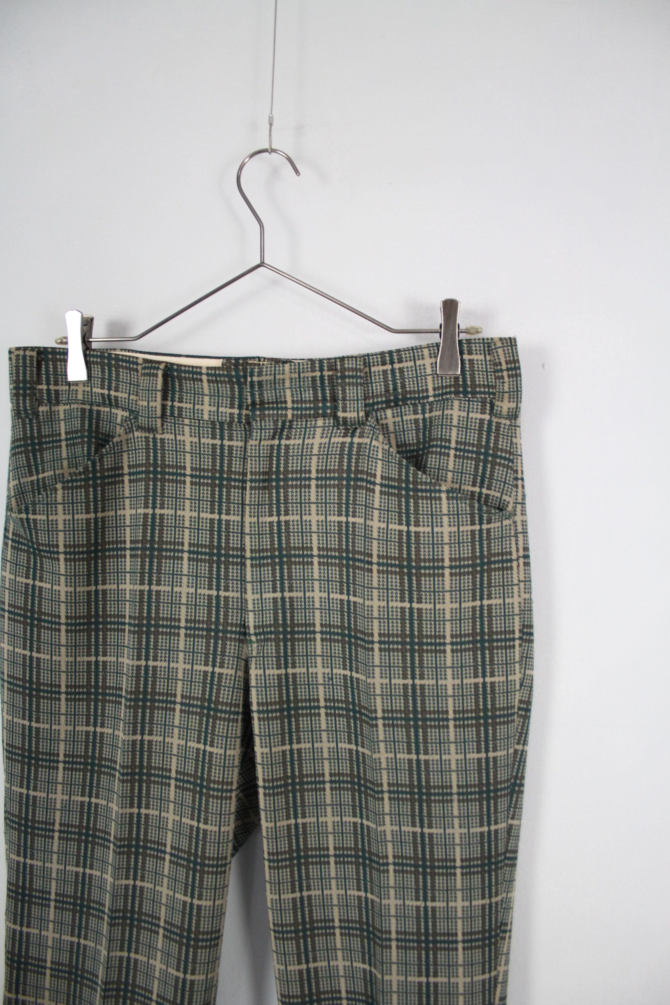 1970's チェック フレアパンツ グリーンベース 柄 【OT-3584】