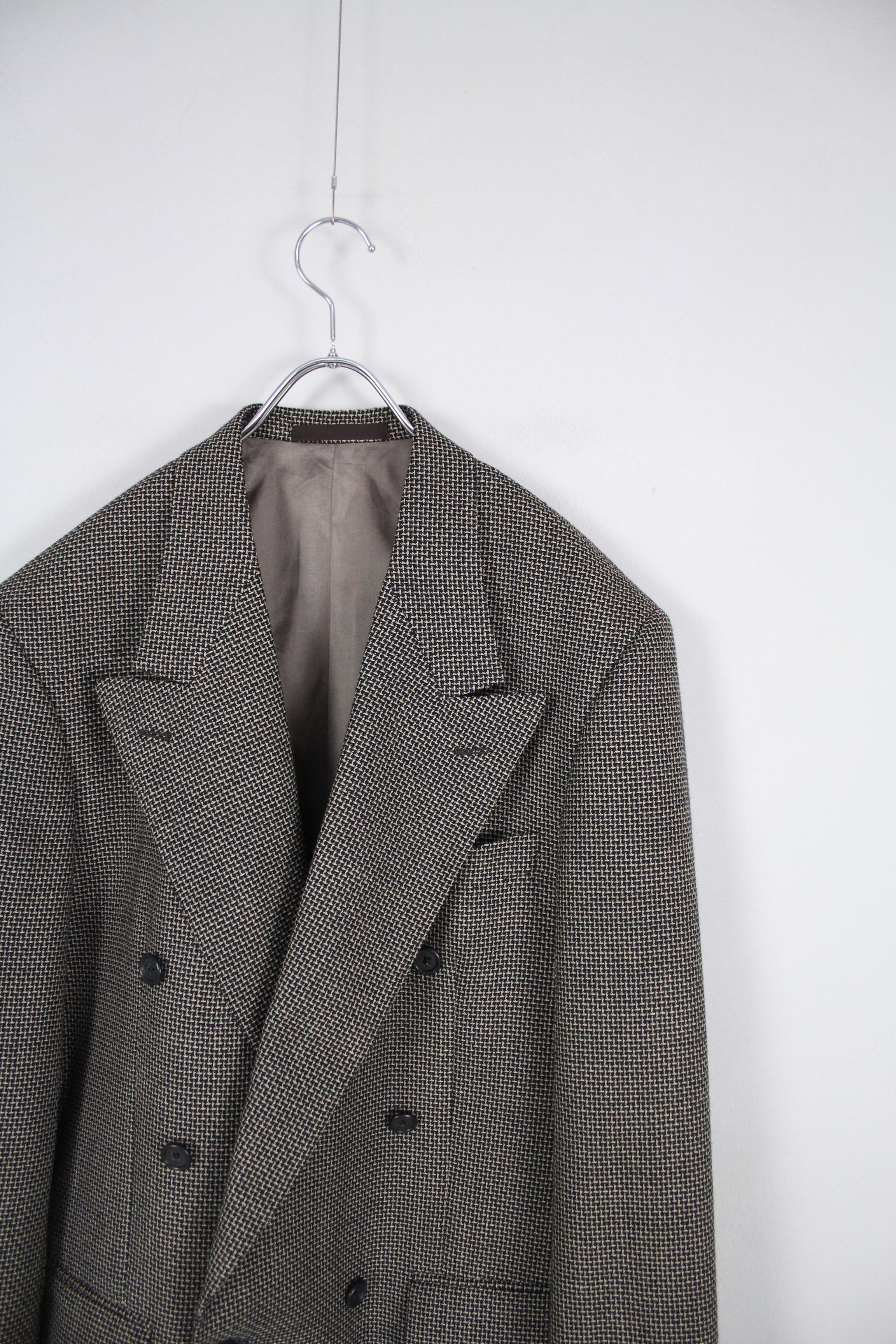 Neiman Marcus ブラック×ベージュ ダブル 総柄 テーラードジャケット 【OT-3593】