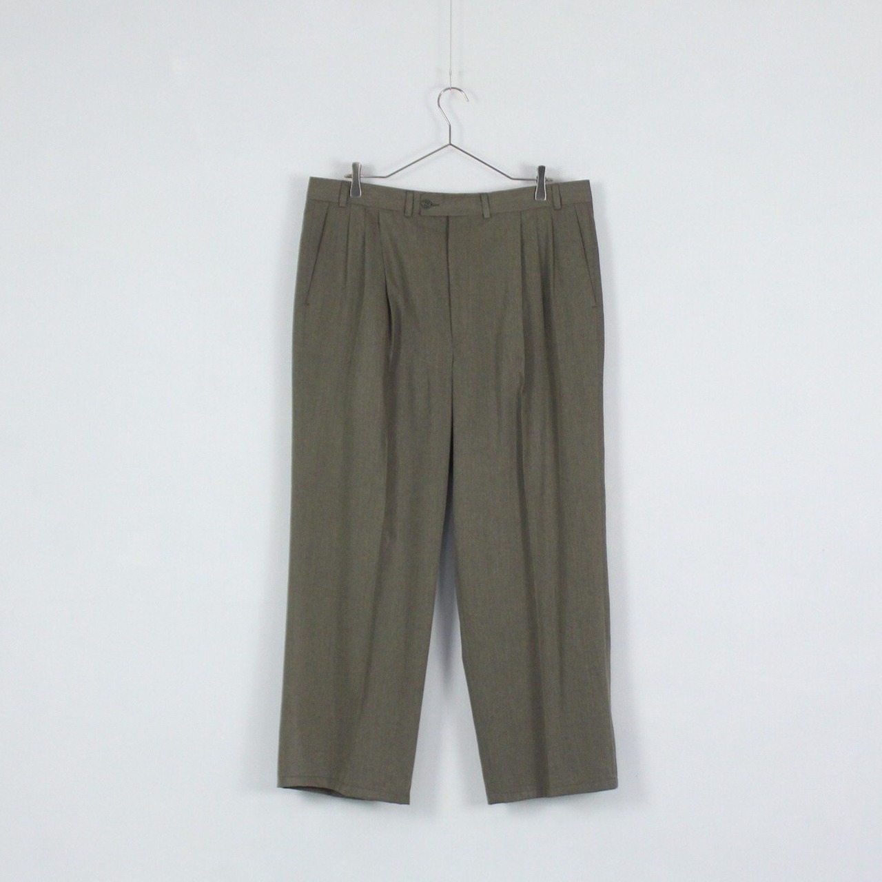 こちらはグレージュカラーでセットアップでは珍しい色味。言葉では表現しにくいですが、センス溢れるカラーリング。素材感もよく普段着やビジネス問わず使える重厚な逸品。