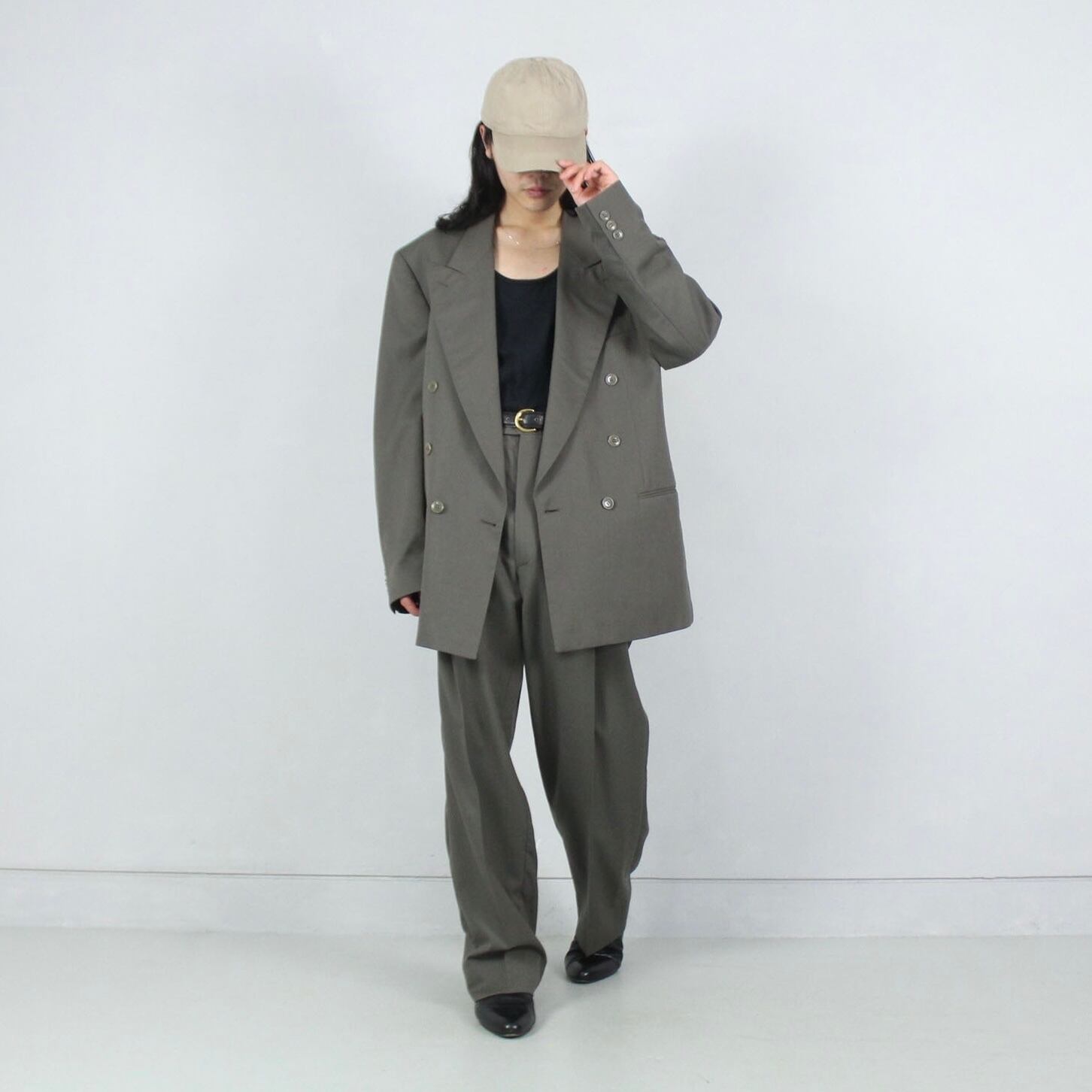 セットアップではもちろん、単体でも合わせやすく使いやすいです。いい意味で古着らしさを感じさせないビジュアルは雰囲気も抜群。