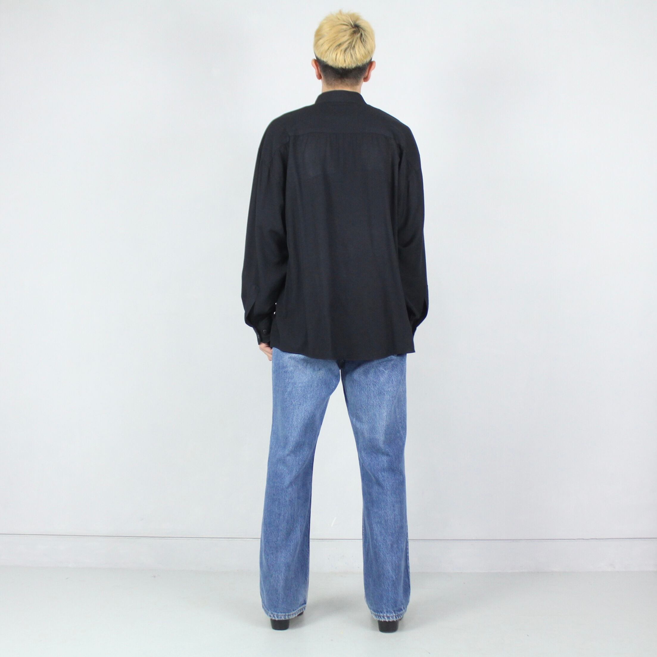 とろみレーヨン バンドカラーシャツ トップボタンデザイン【CO-1434】