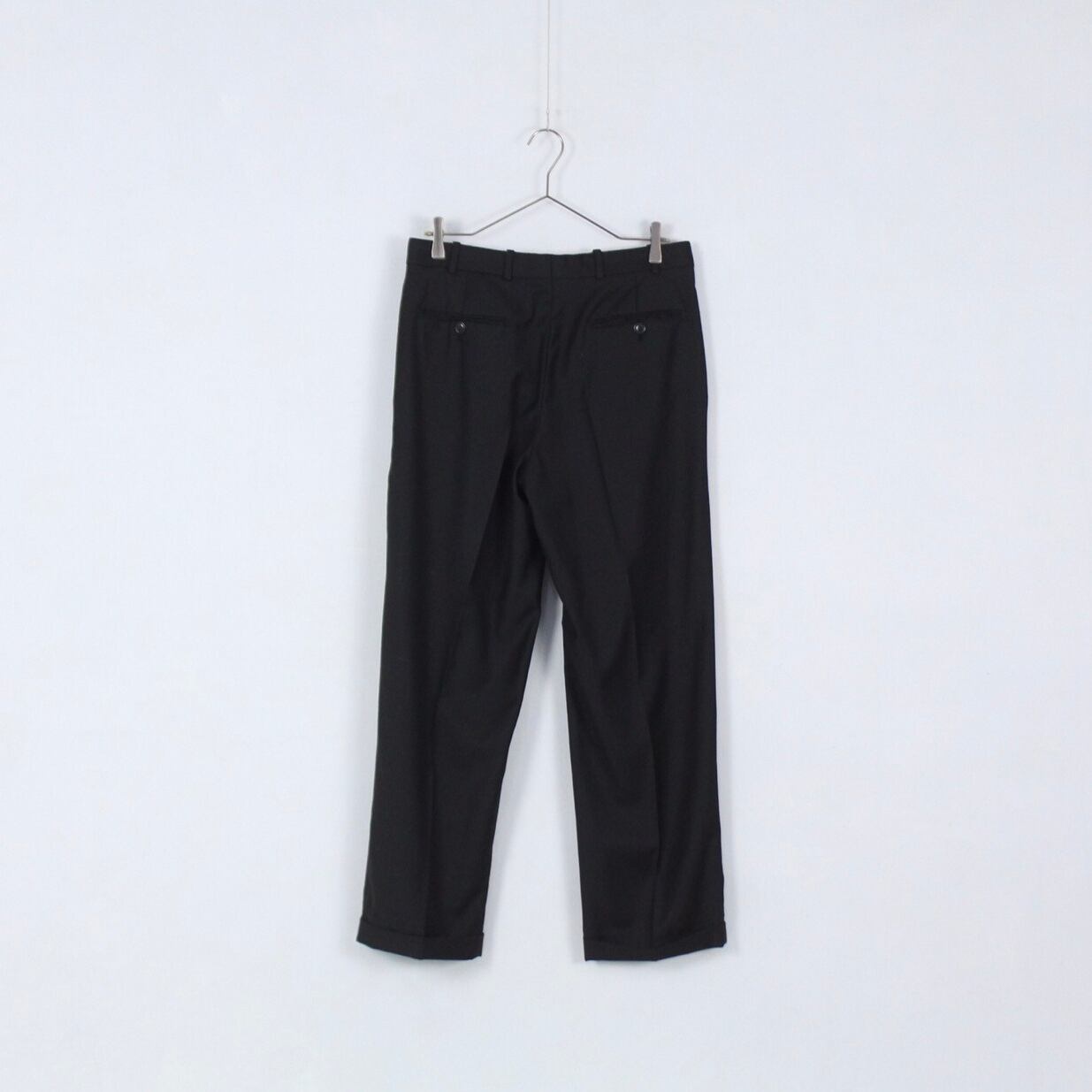 ファブリックはウールのとろみを感じる生地感。光沢も感じられ履くと揺れ感がある着心地。汎用性抜群です。
