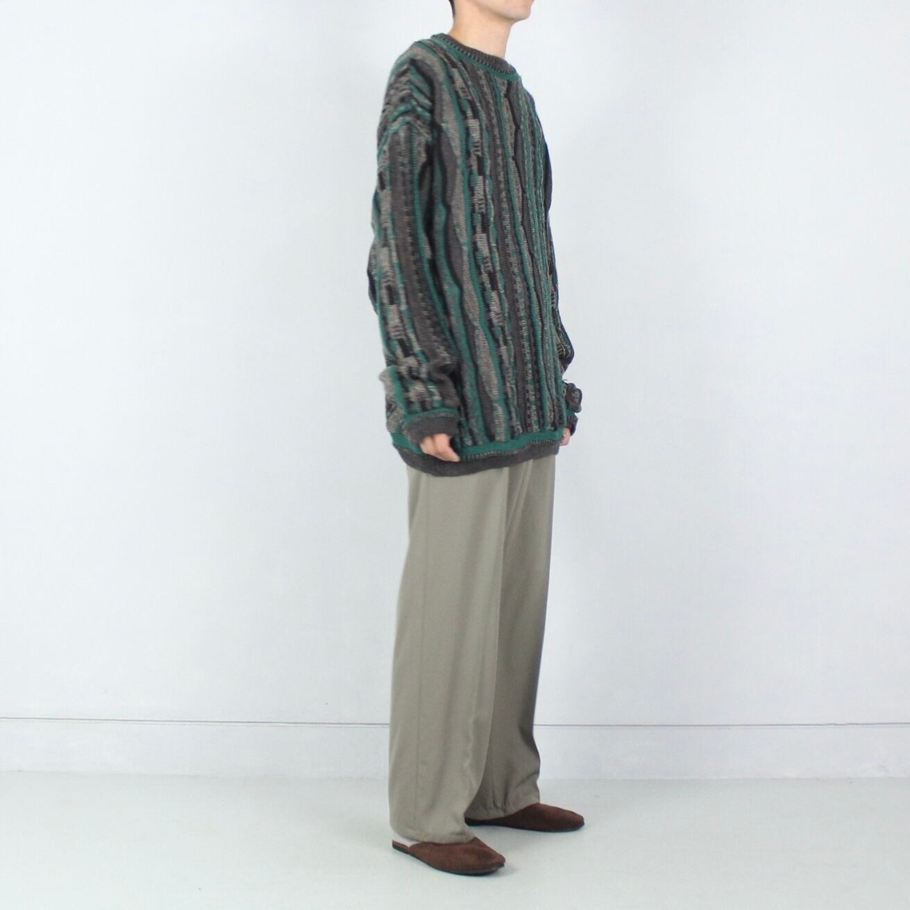 オーバーサイズ グリーン系 総柄 3Dニットセーター【CO-1421】