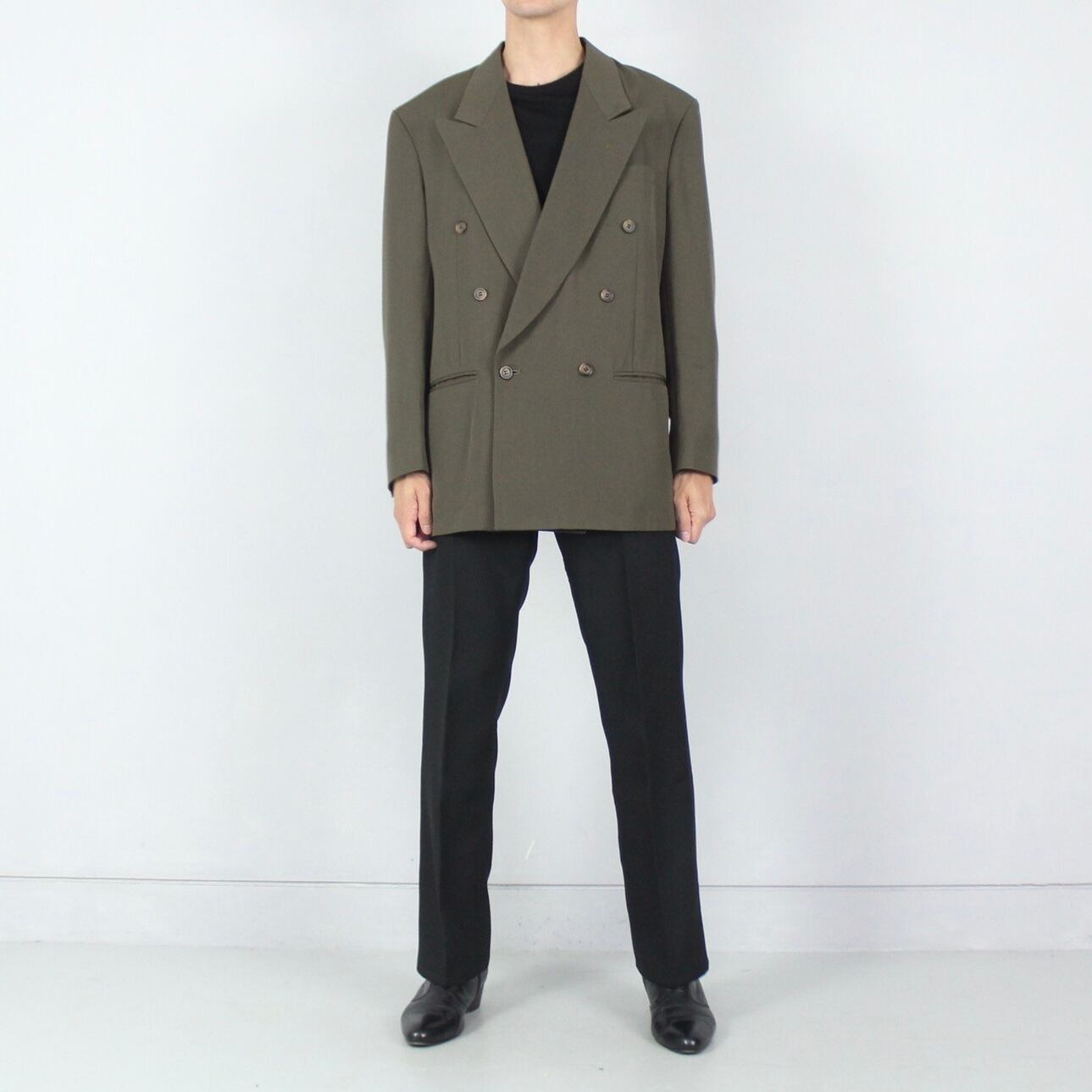 とろみポリウール ダブルテーラードジャケット オリーブグレー【CO-1428】