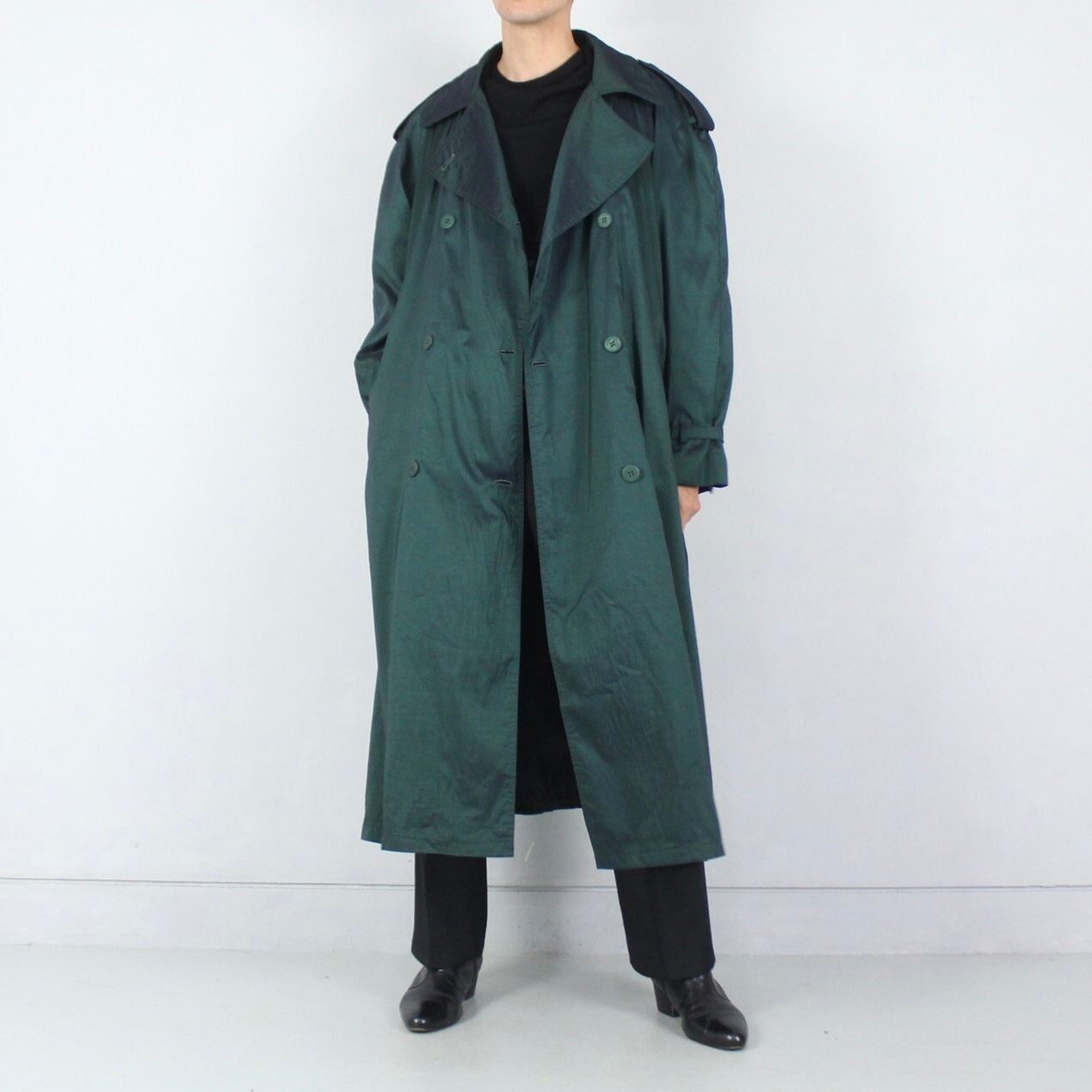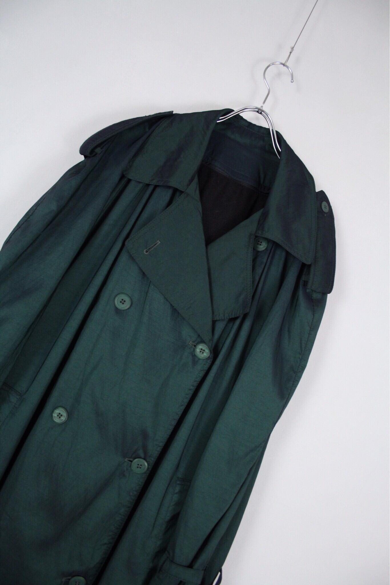 玉虫光沢ディープグリーン ベルテッドトレンチコート 着脱可ライナー付き【CO-1429】