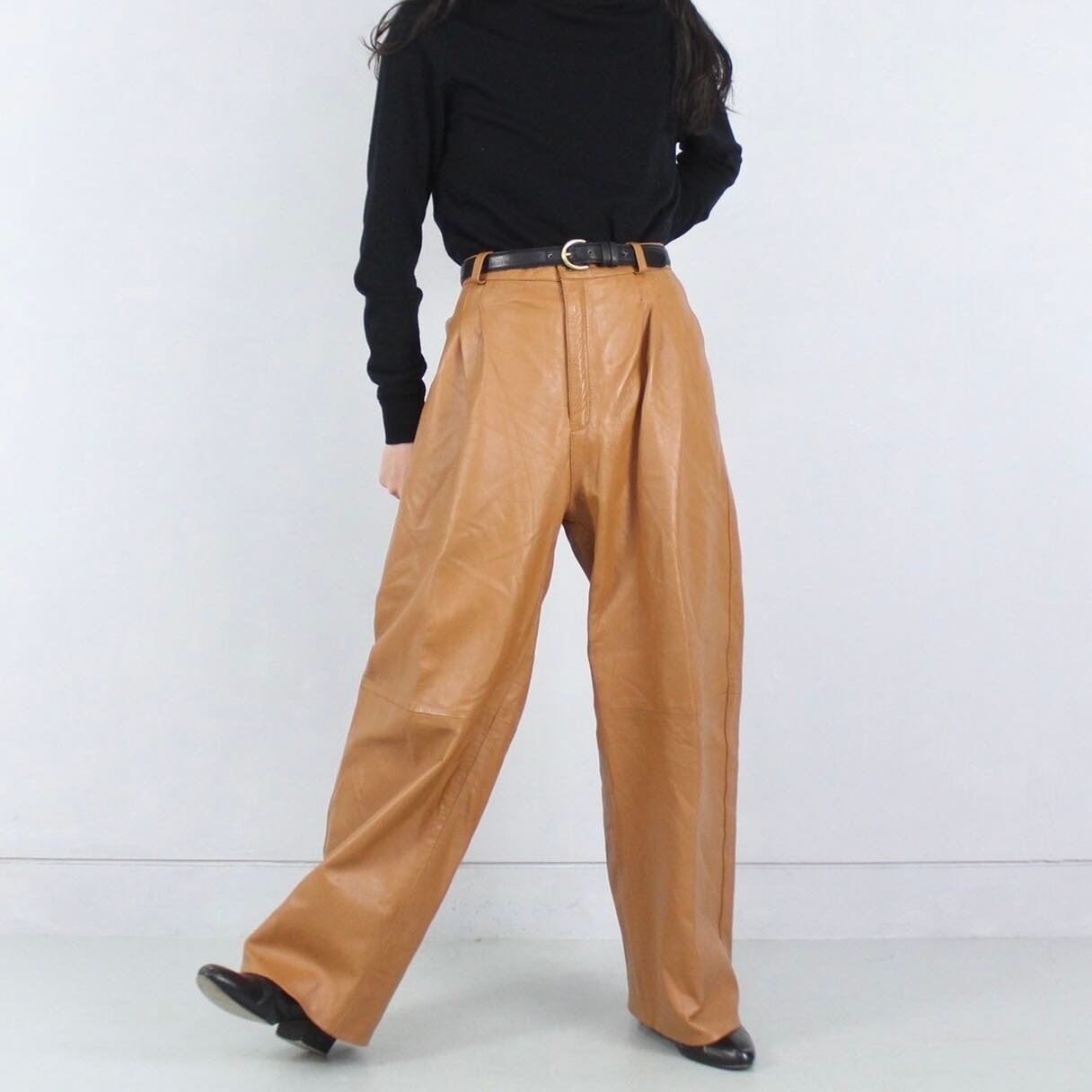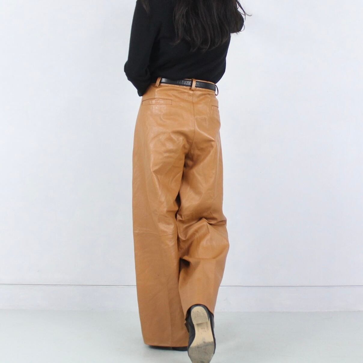 レザーパンツは細身の物が多くこうゆうタック入りのワイドシルエットはかなり希少。スラックスと同じデザインなのですごく使いやすいです。