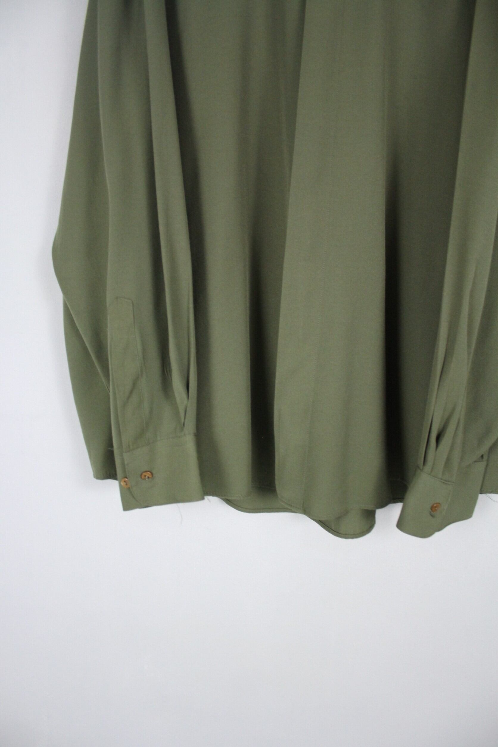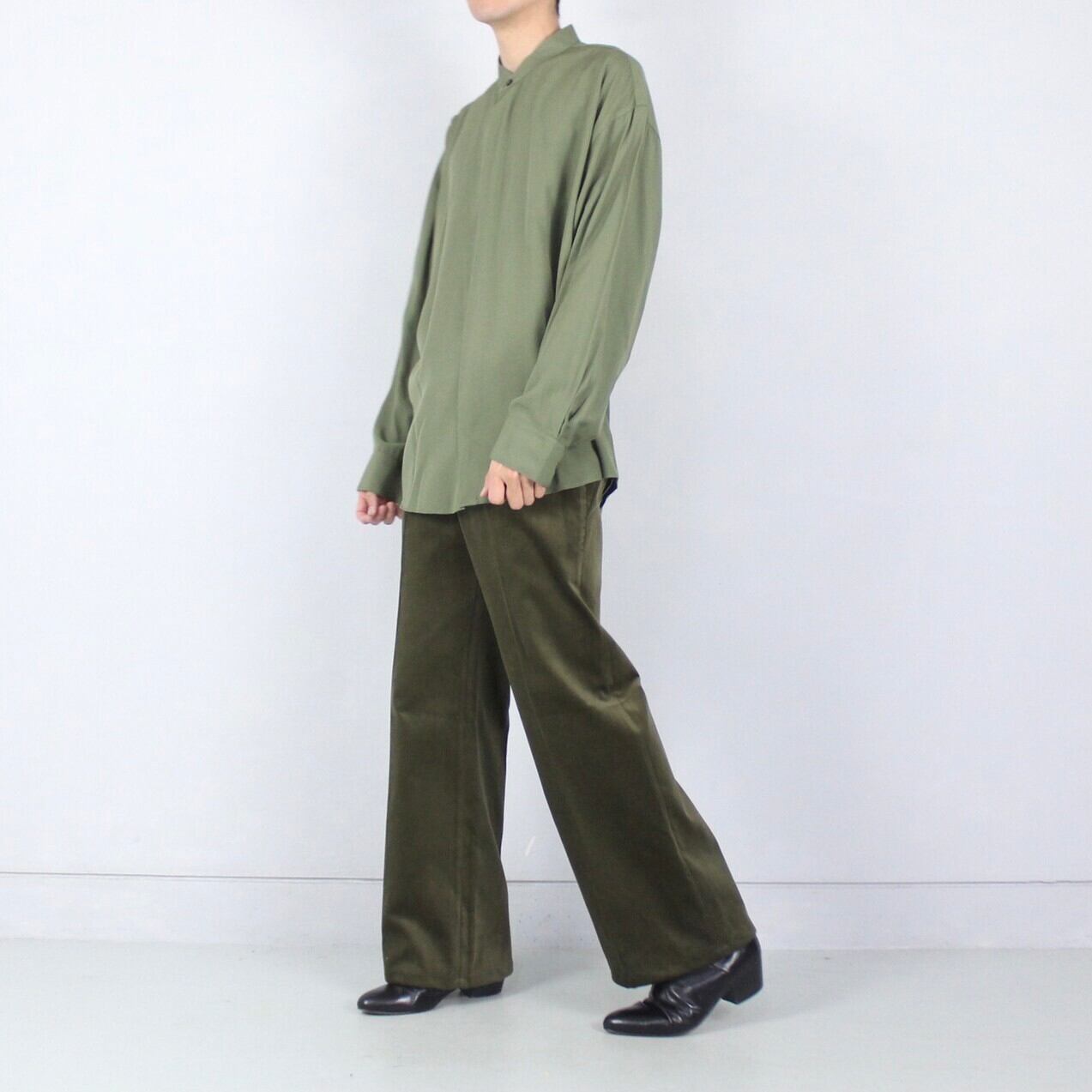 モスグリーンカラー 比翼 とろみ バンドカラーシャツ【CO-1448】